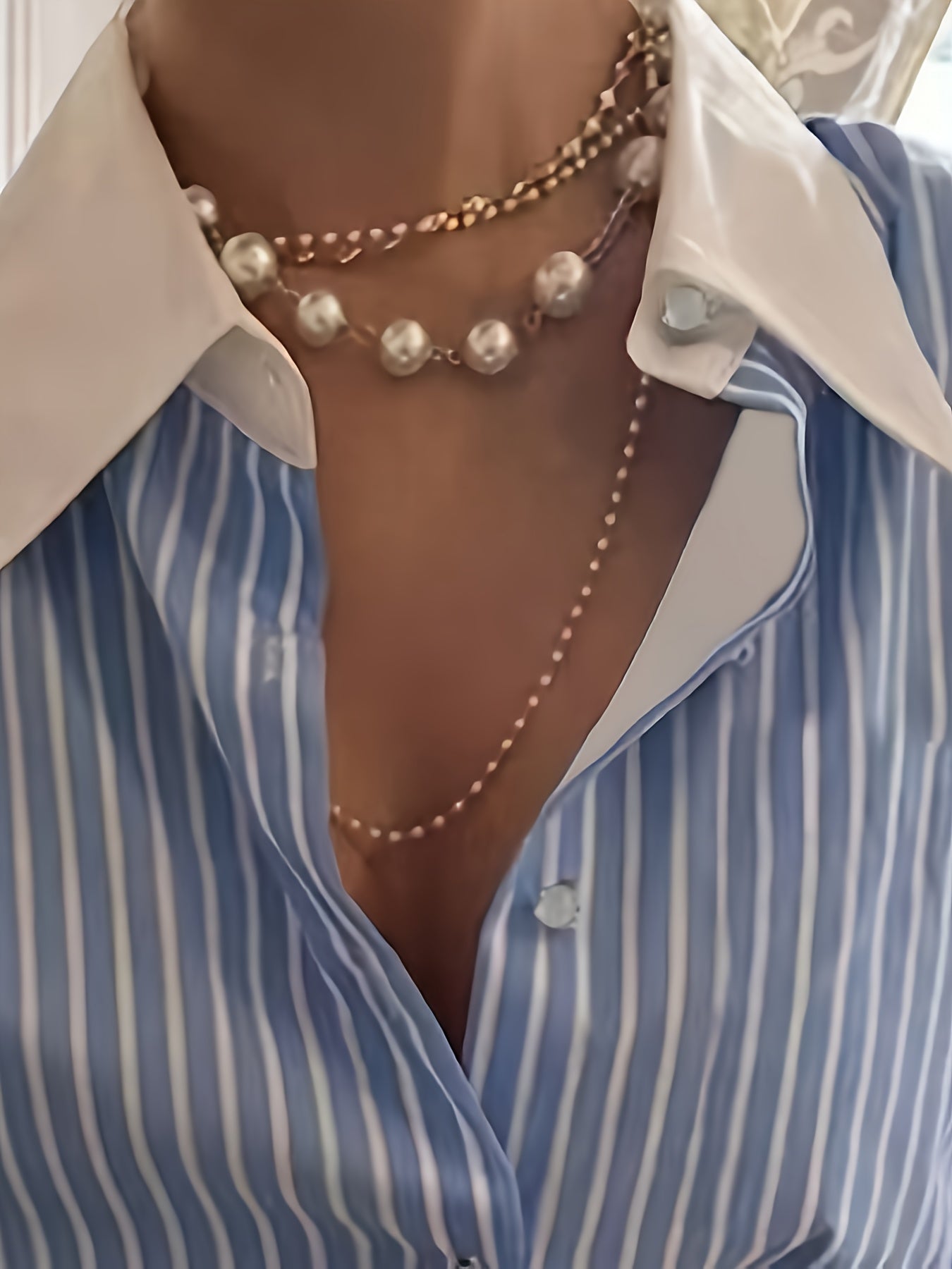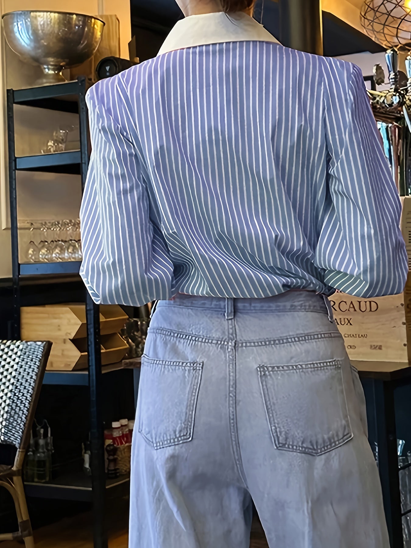 Women's Casual Striped Long Sleeve Shirt Polyester Spandex Button Detail