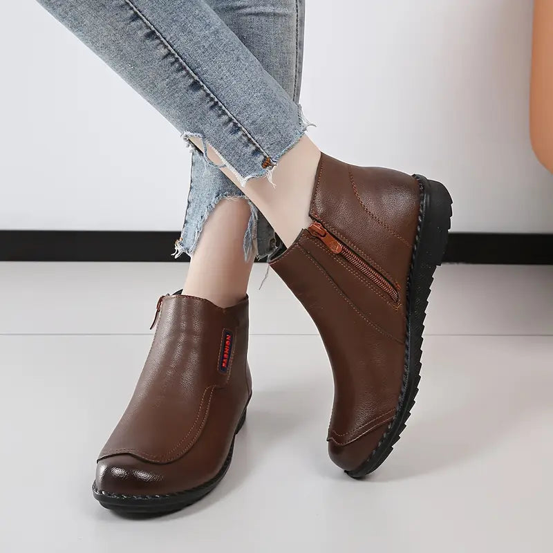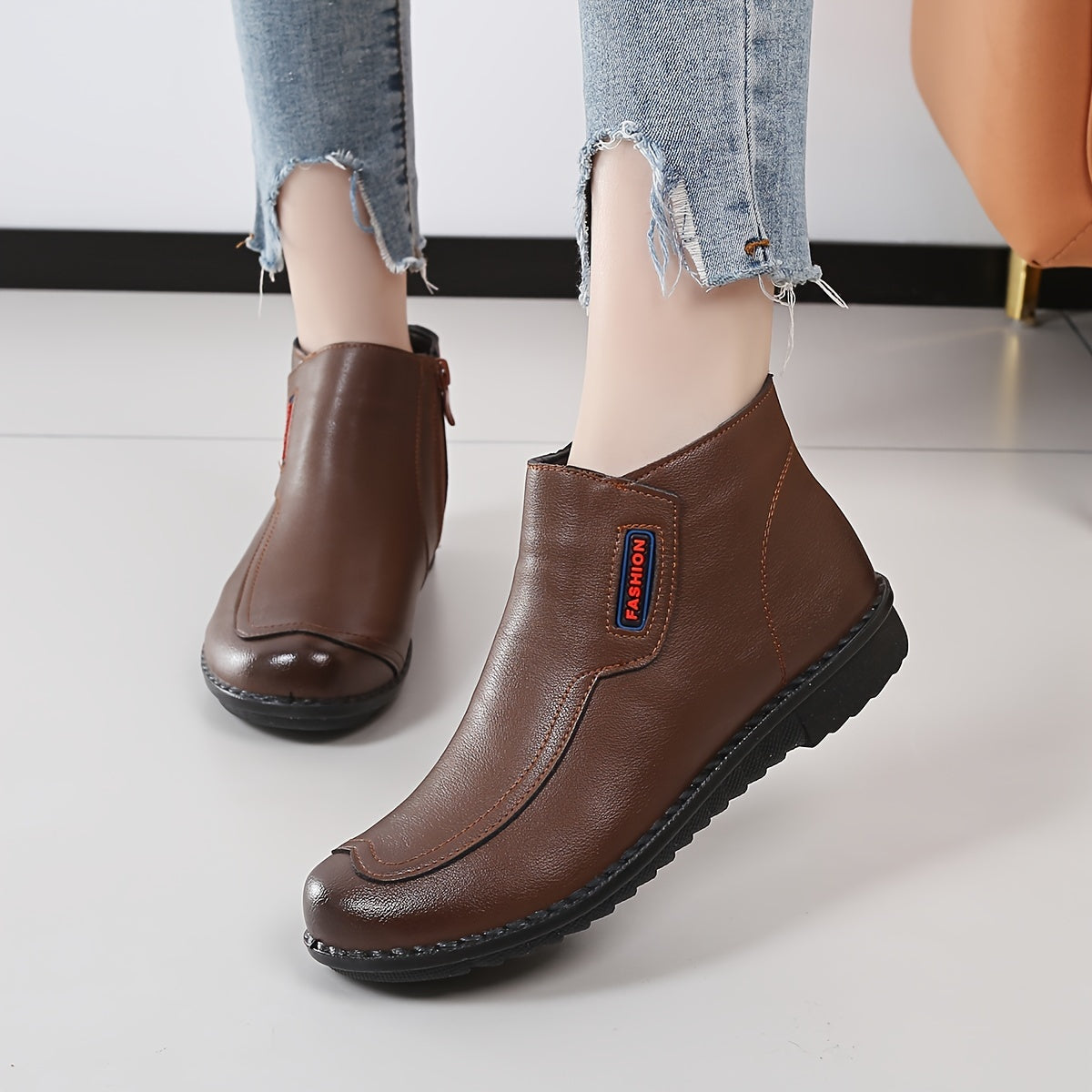 Women's Comfortable Flat Ankle Boots Soft PU Side Zipper All-Season