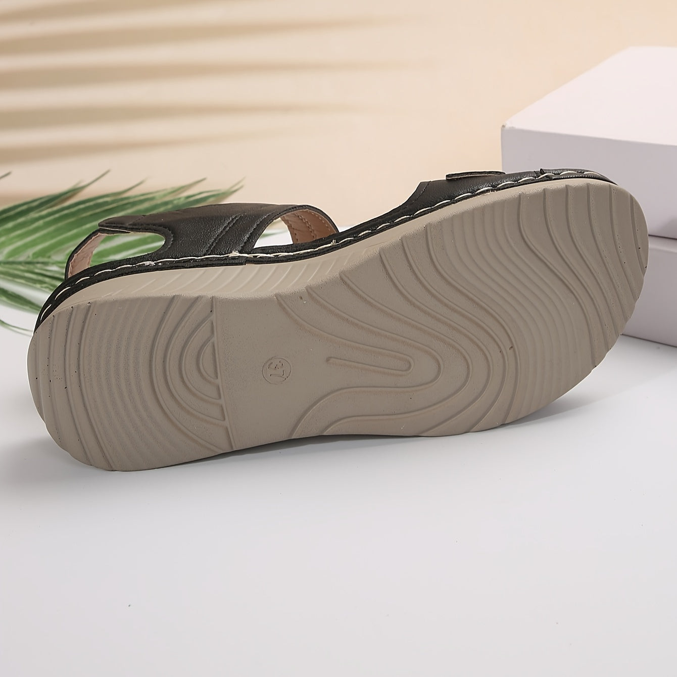 Women's Faux Leather Open-Toe Wedge Sandals with Hook-and-Loop Fastener