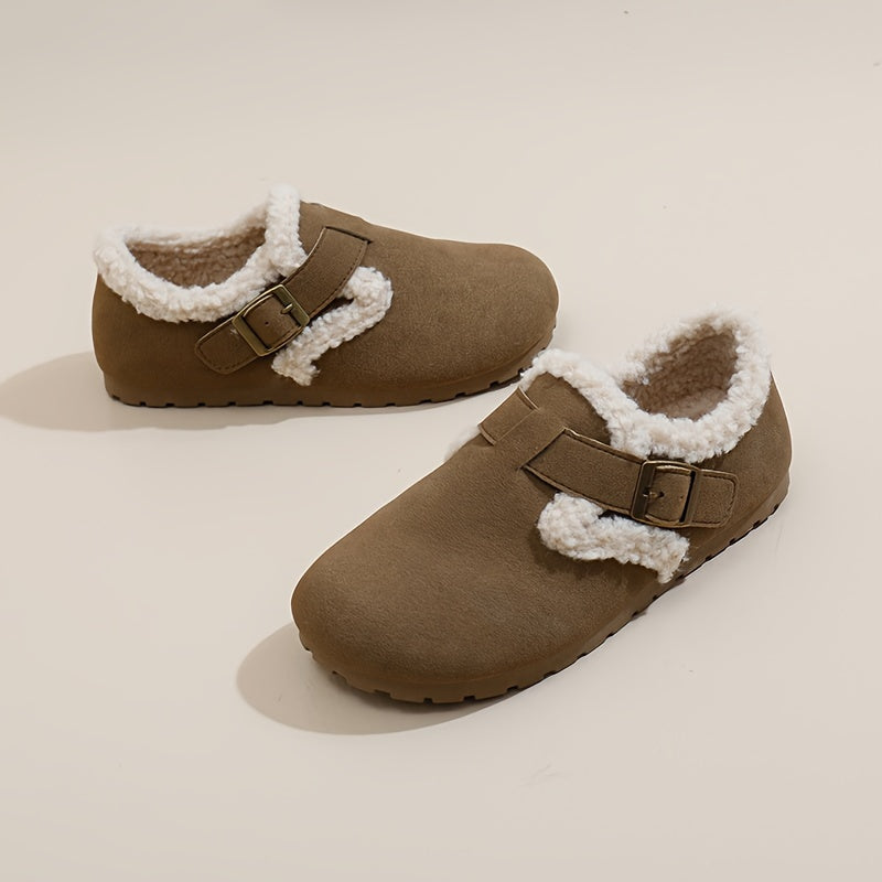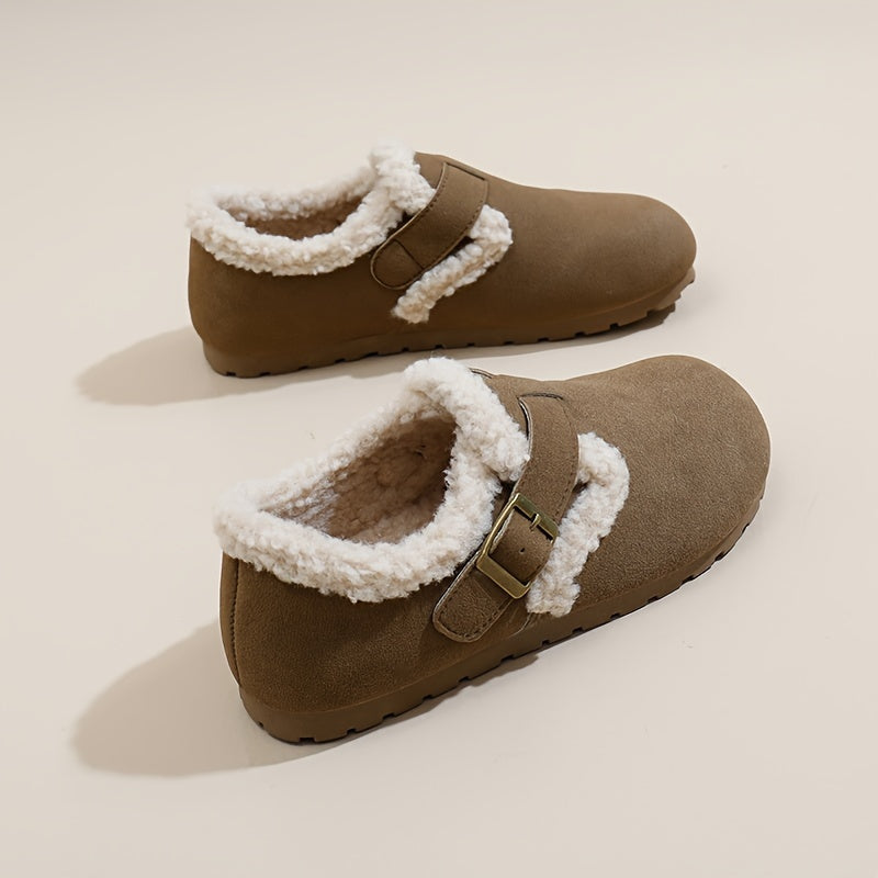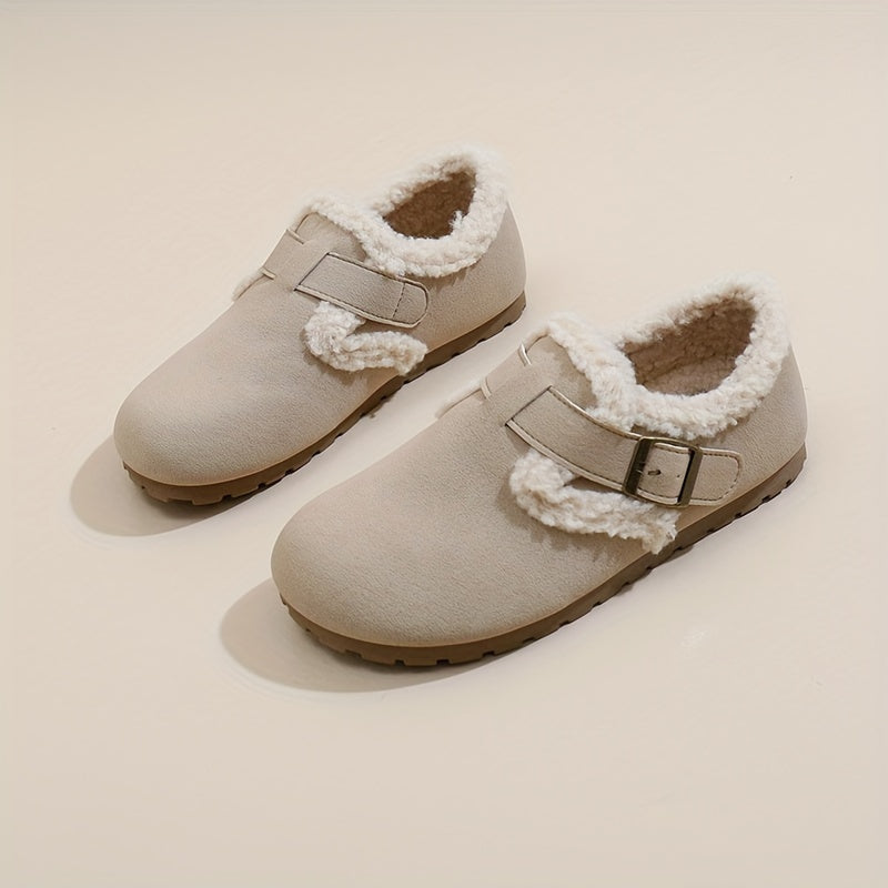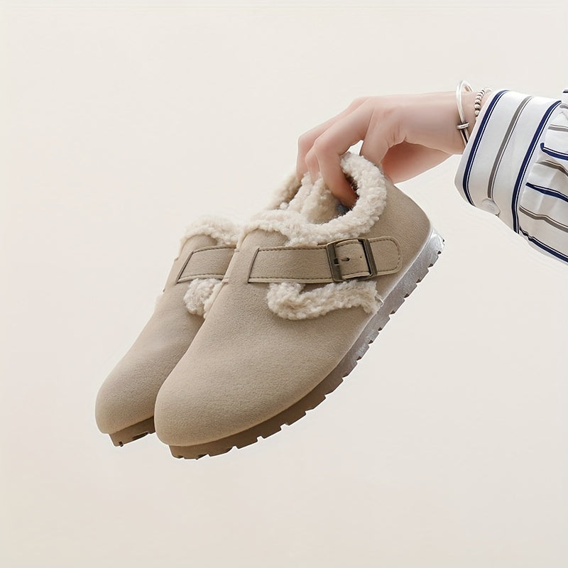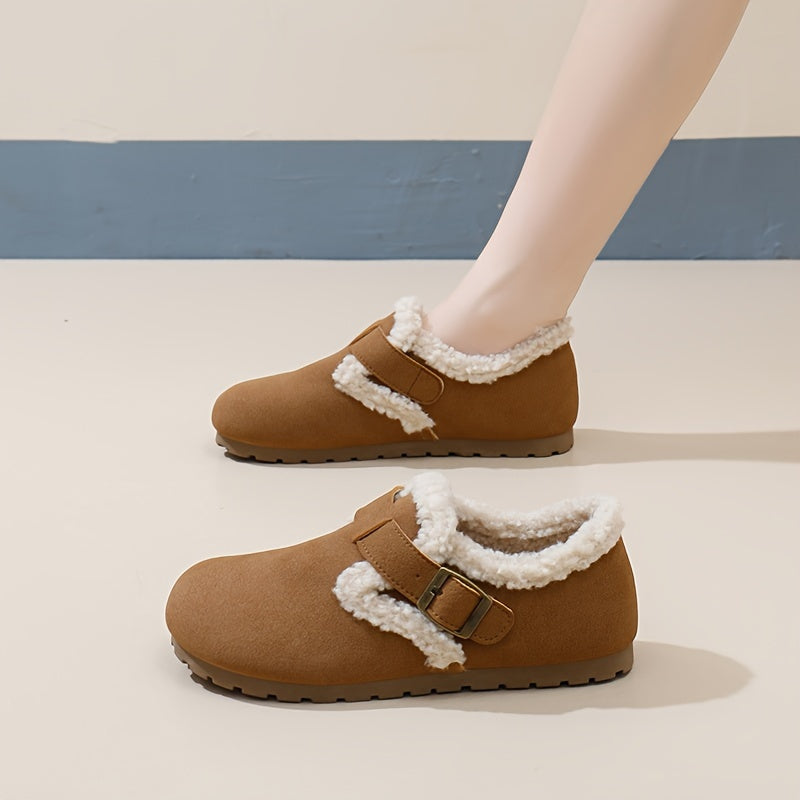 Women's Flannel-Lined Ankle Booties Casual Flat Heel Buckle Closure
