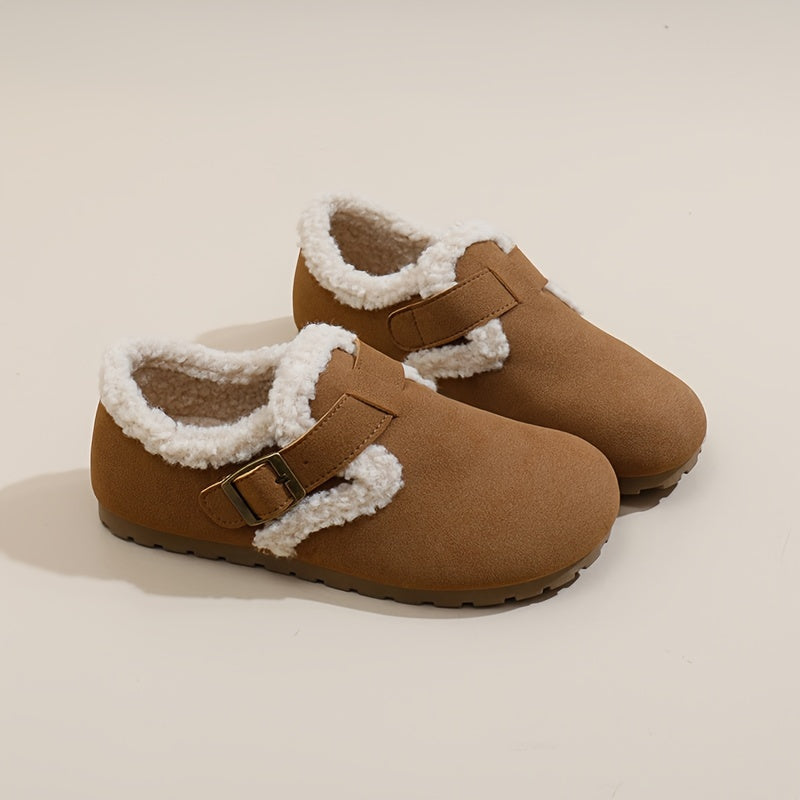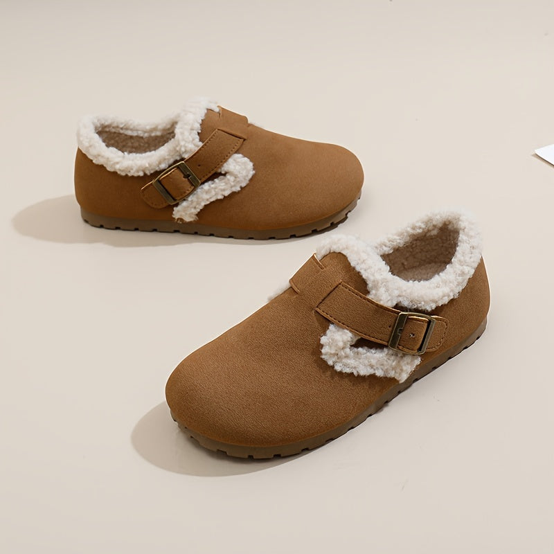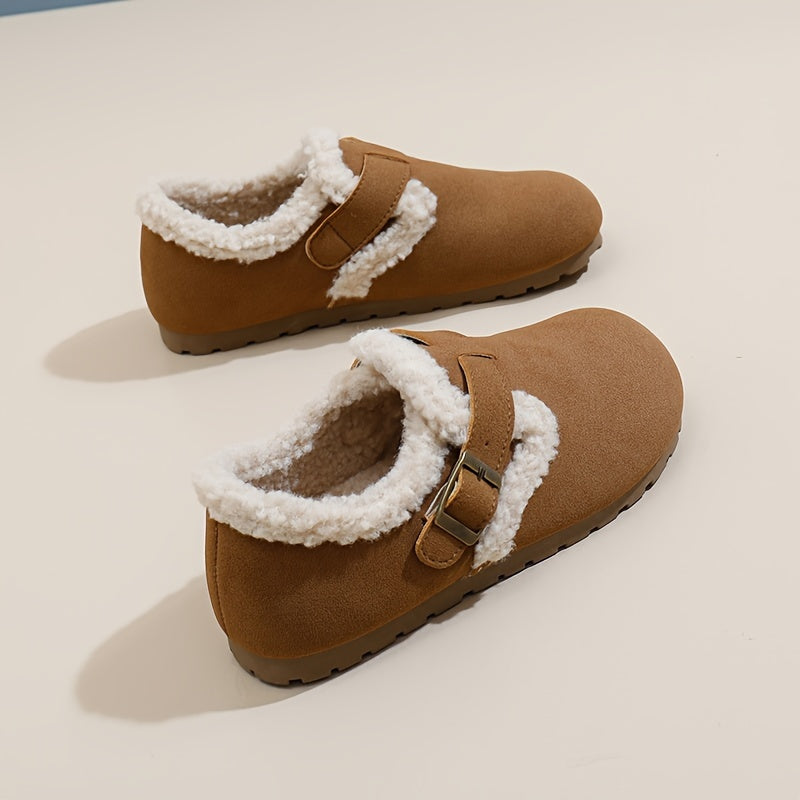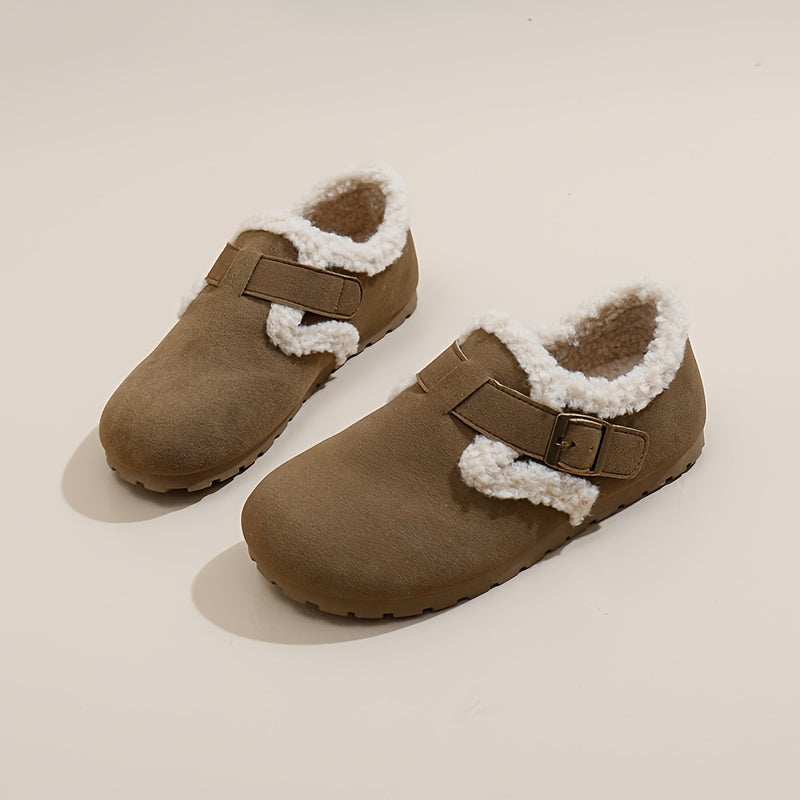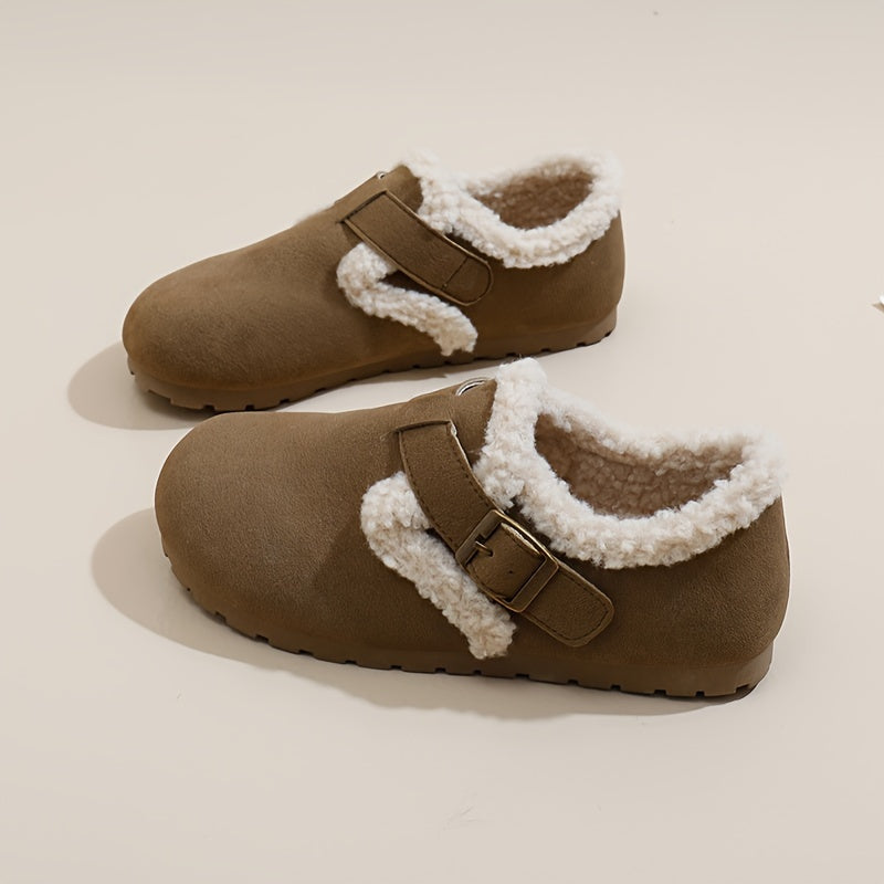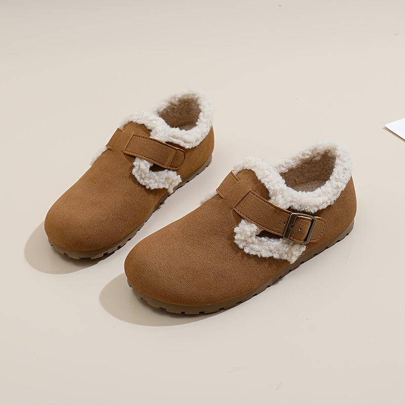 Women's Flannel-Lined Ankle Booties Casual Flat Heel Buckle Closure