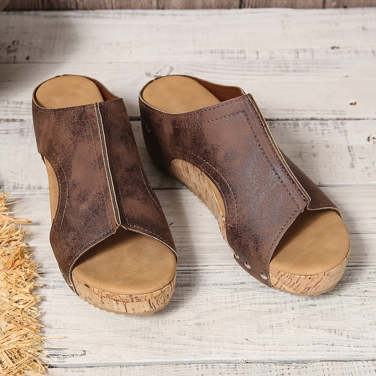 Women's Flat Heel Sandals Open Toe Slip-On Rivet Faux Leather Summer Shoes