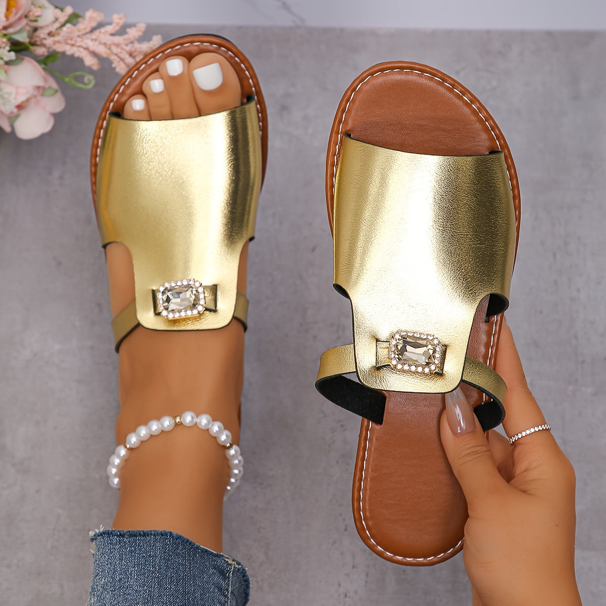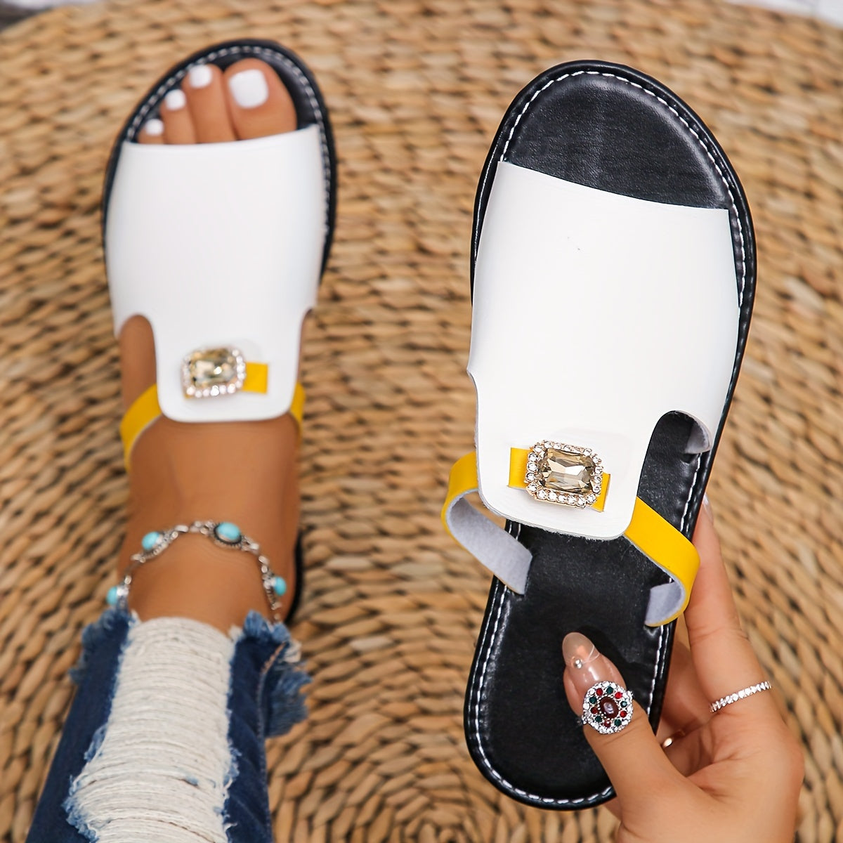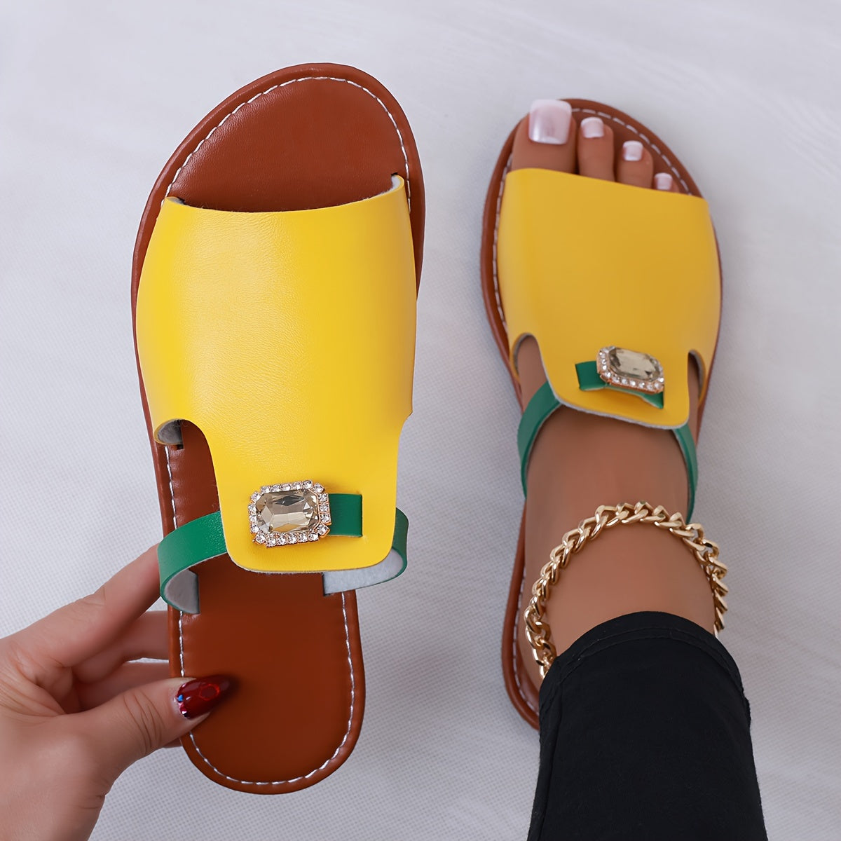 Women's Flat Sandals Slip-On Open Toe Casual Summer Shoes Vibrant Green