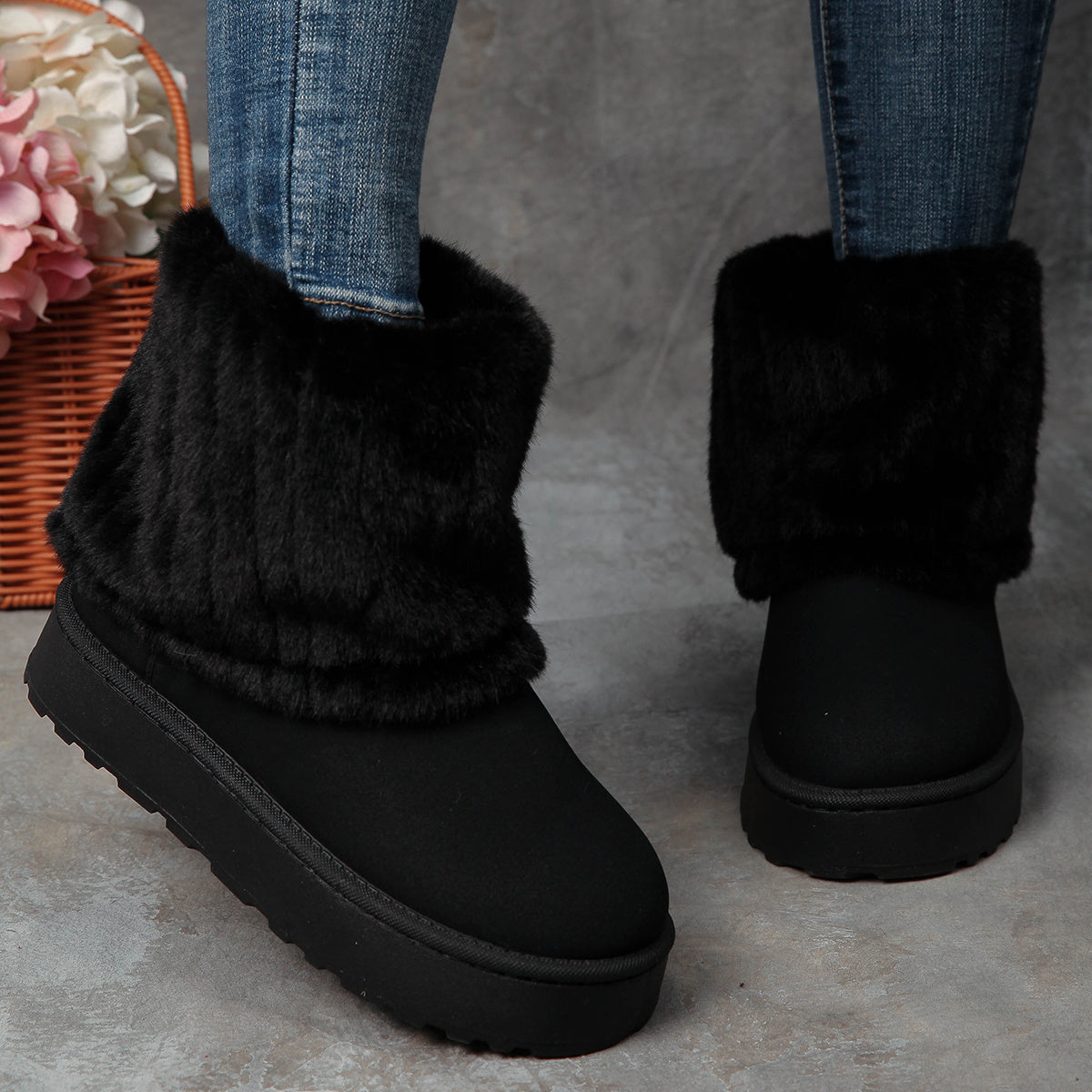 Women's Fleece-Lined Winter Boots Slip-On Round Toe Ankle Mid-Heel Durable Sole