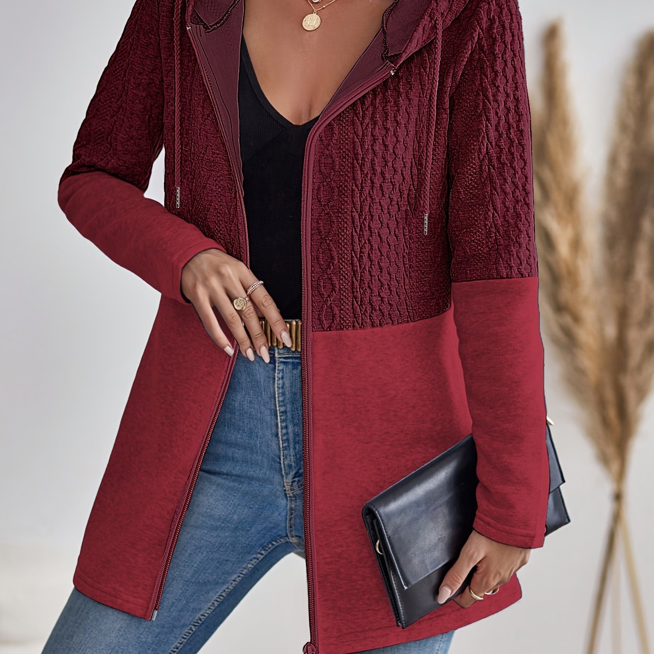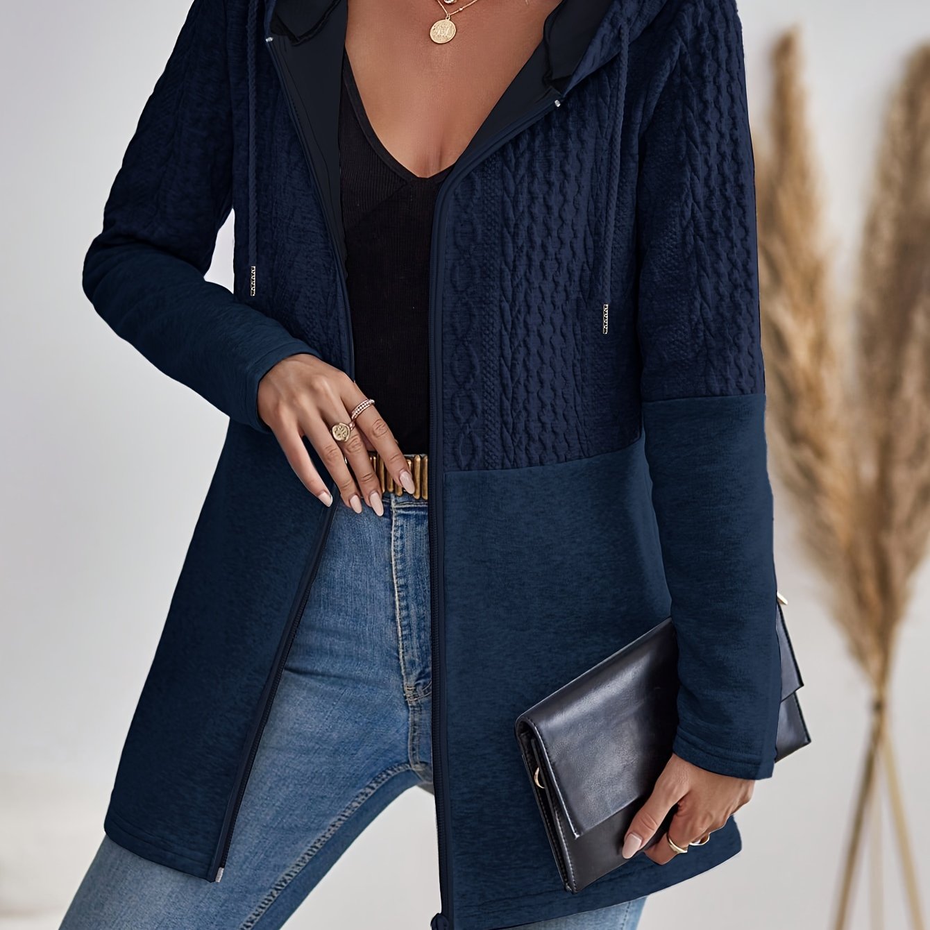 Women's Gray Hooded Cardigan Polyester Zipper Solid Color All Season
