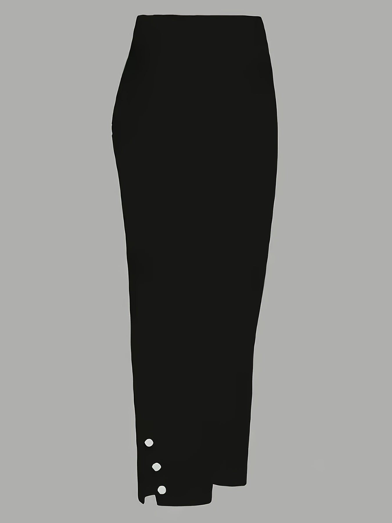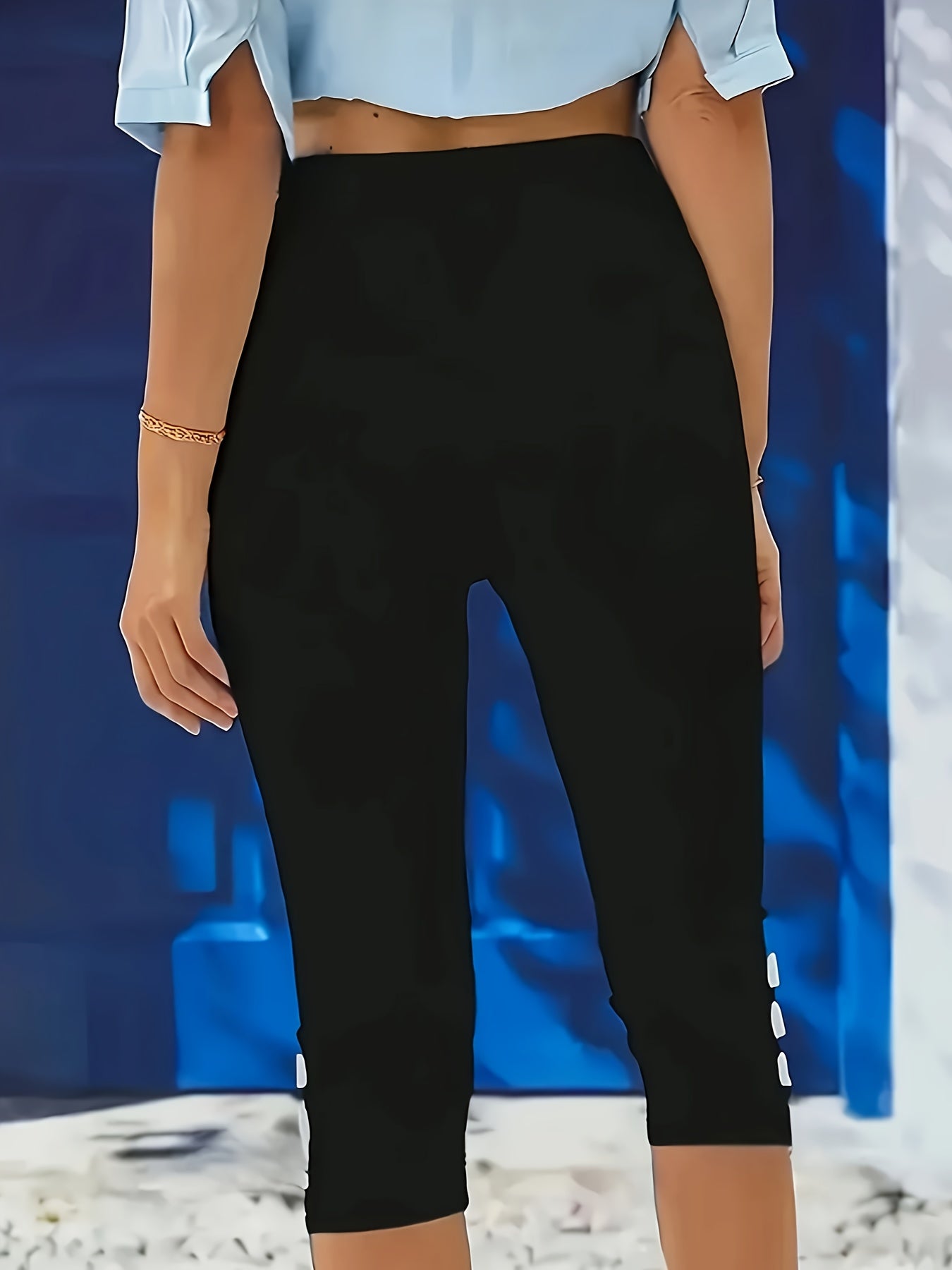 Women’s High Waist Capri Pants with Button Details Knit Solid Color Summer