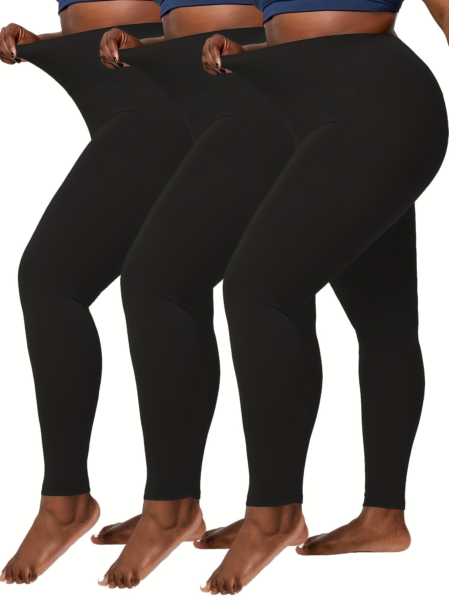 Women's High Waist Skinny Fit Underwear Set 3 Pcs Solid Color Knit Polyester