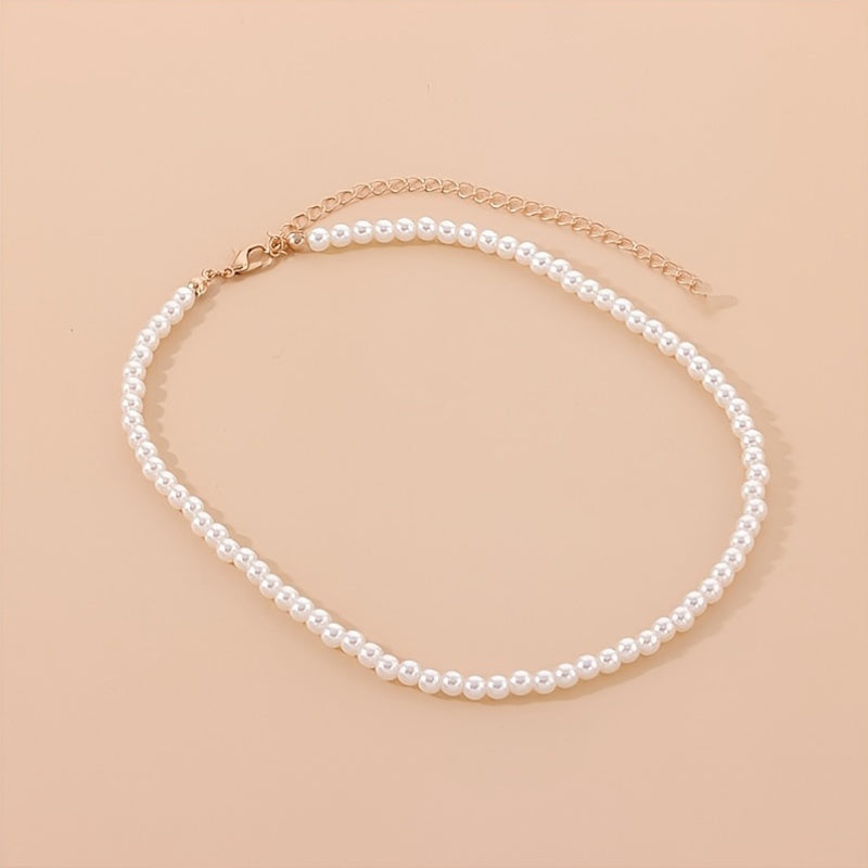 Women's Imitation Pearl Choker Necklace Resin Beaded Wedding Party Accessory