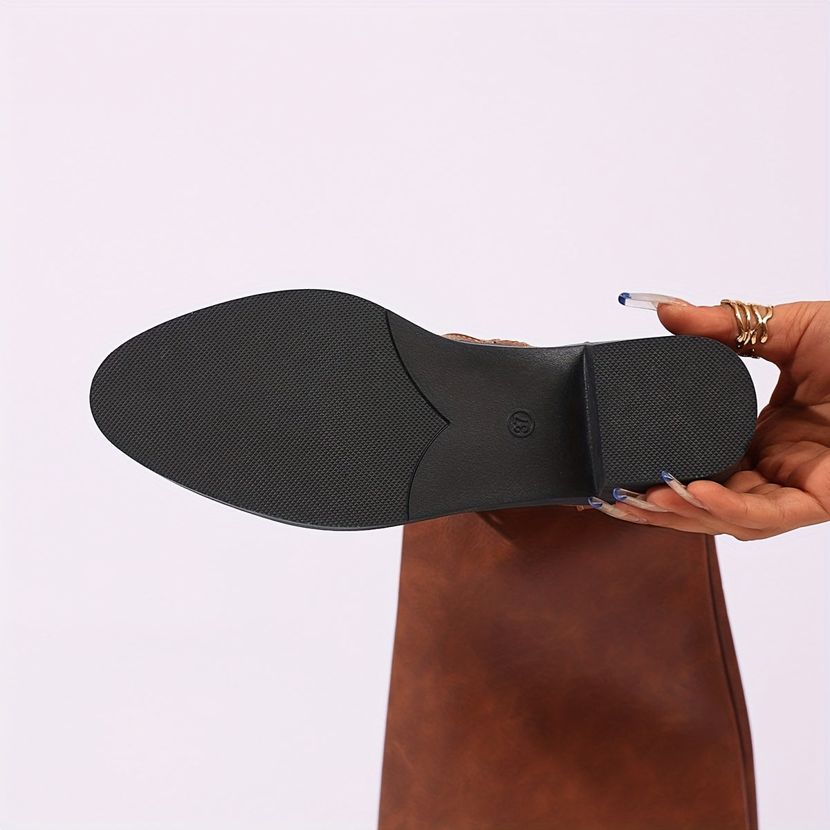 Women’s Knee-High Riding Boots Faux Leather Side Zipper Pointed Toe