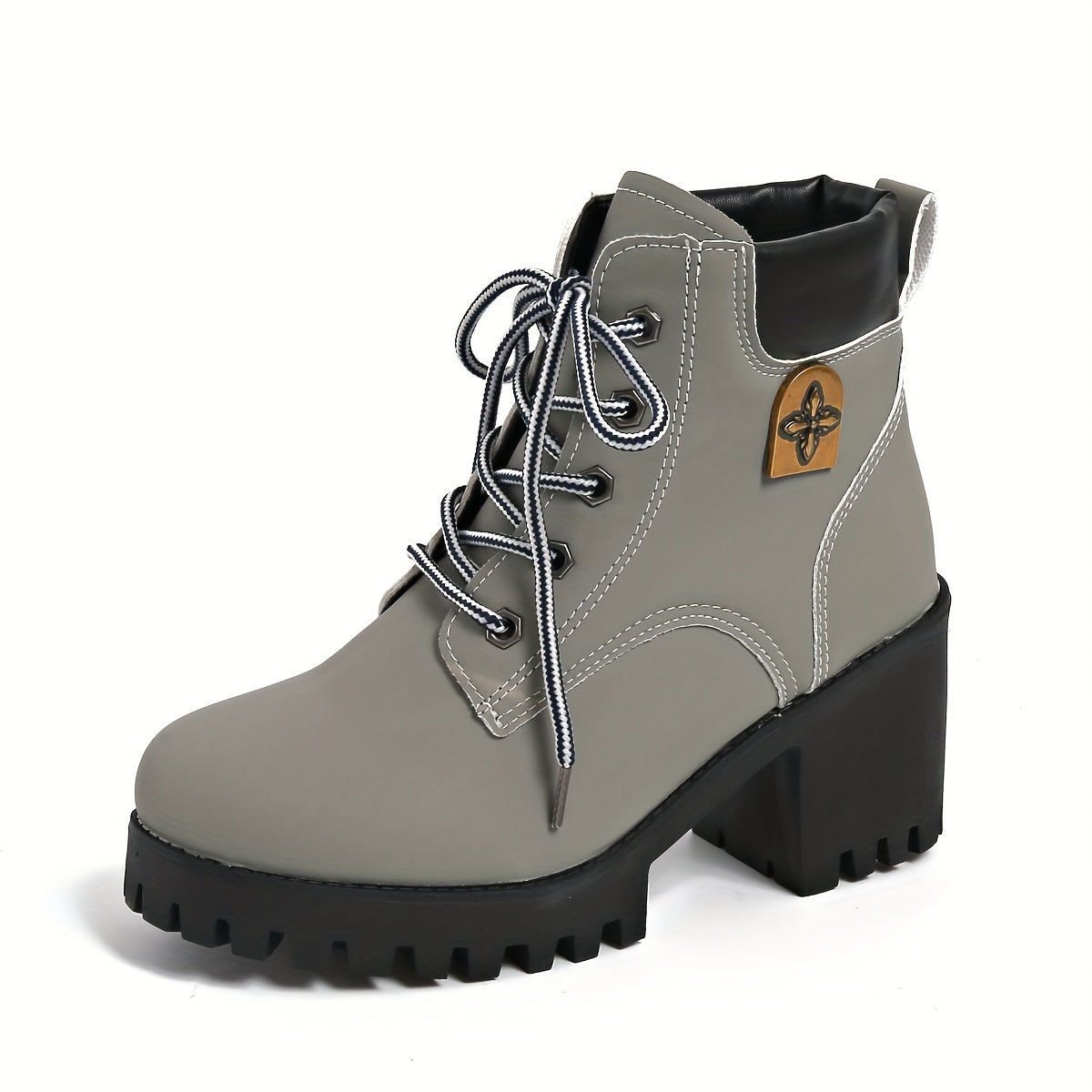 Women's Lace-Up Ankle Boots All-Season Round Toe Block Heel Solid Color