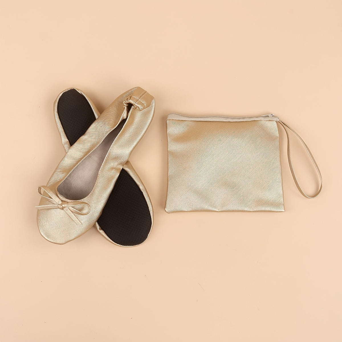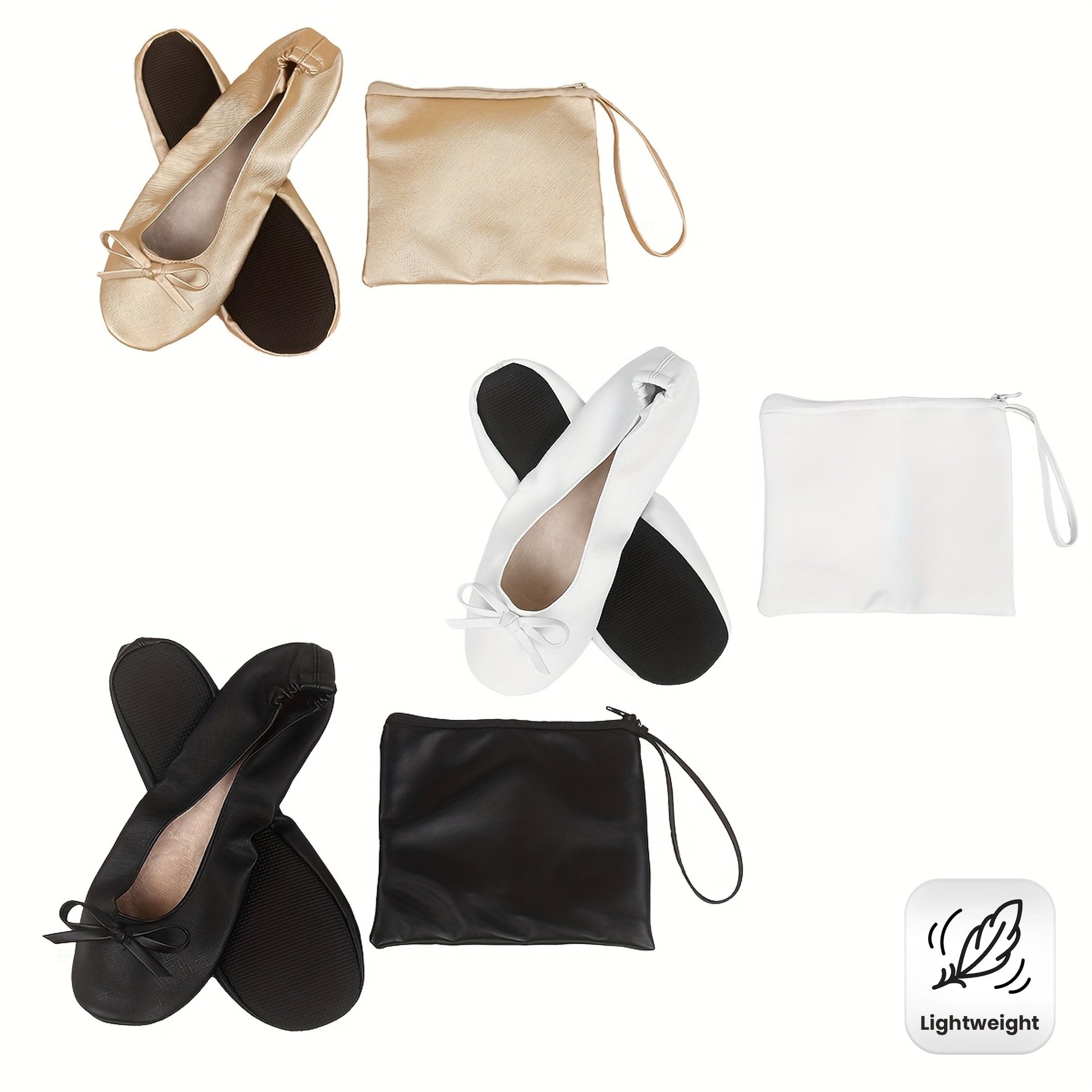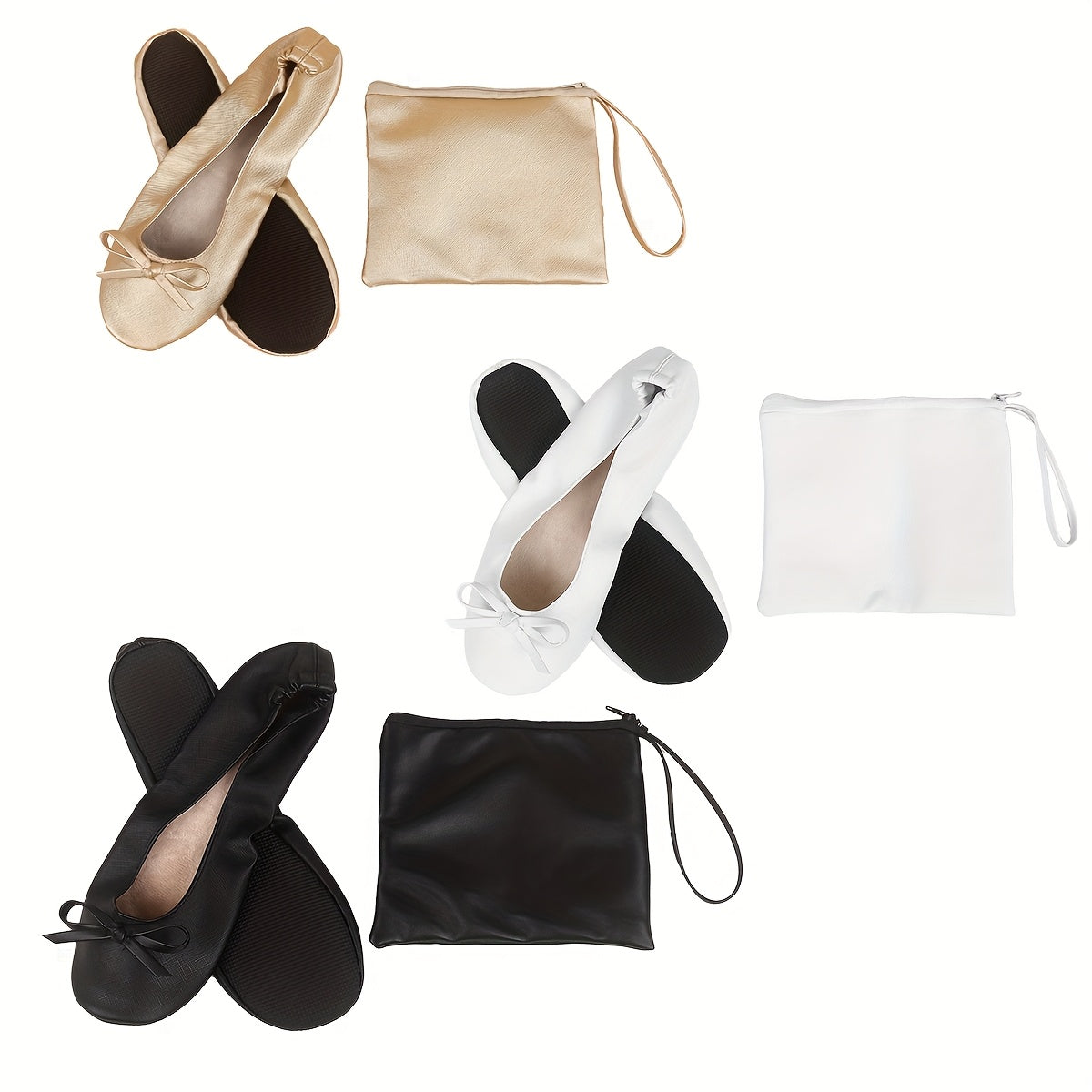 Women's Lightweight Foldable Dance Shoes with Bow, Slip-On PU Cover TPR Sole