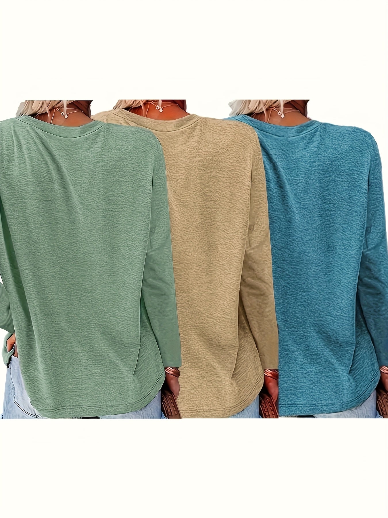 Women's Long Sleeve Round Neck Tops Set Cotton Casual Shirts for Spring Fall