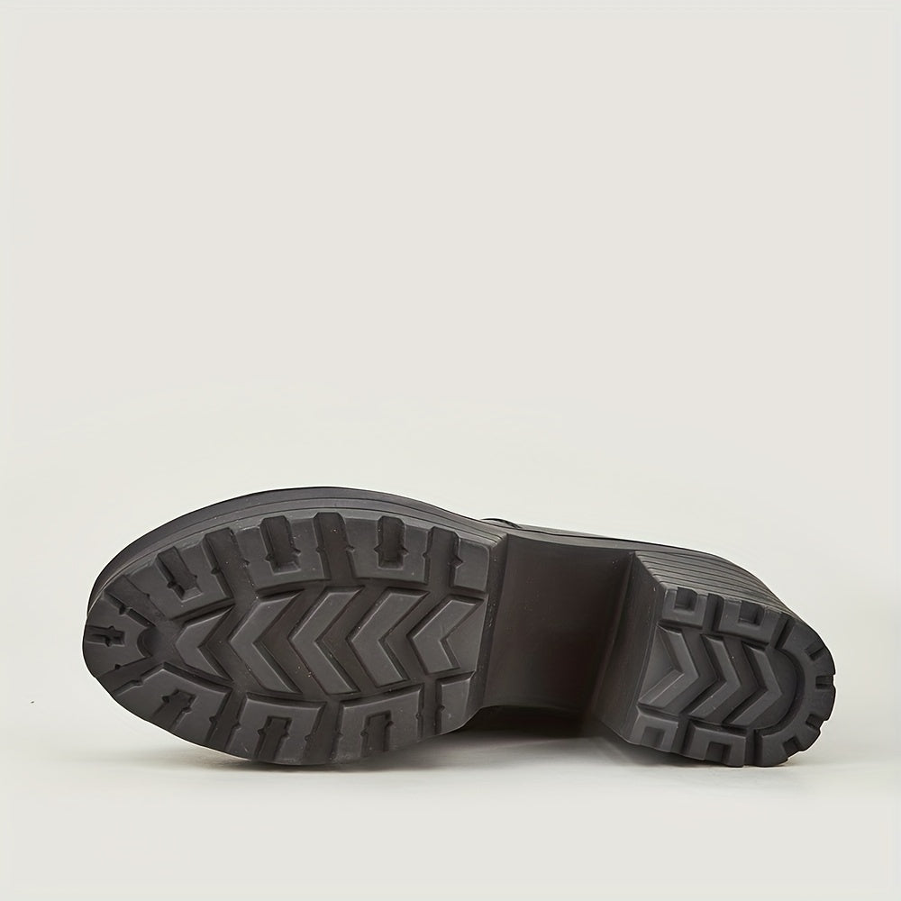 Women's Mid-Calf Leather Boots Thick-Sole High Heels Anti-Skid Autumn Winter