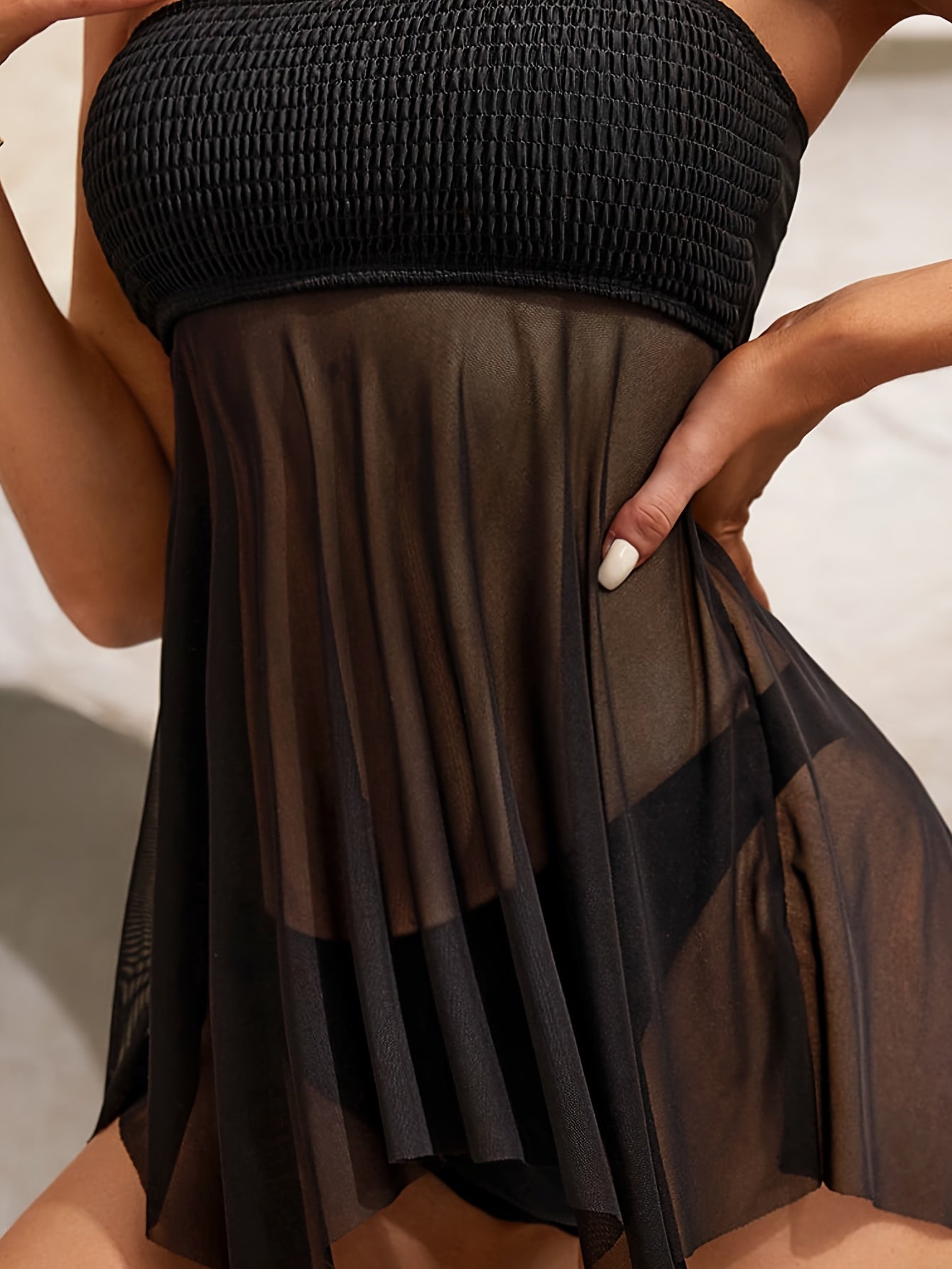 Women's Off-Shoulder Tankini Swimsuit Set Solid High Stretch Knit Fabric for Swimming