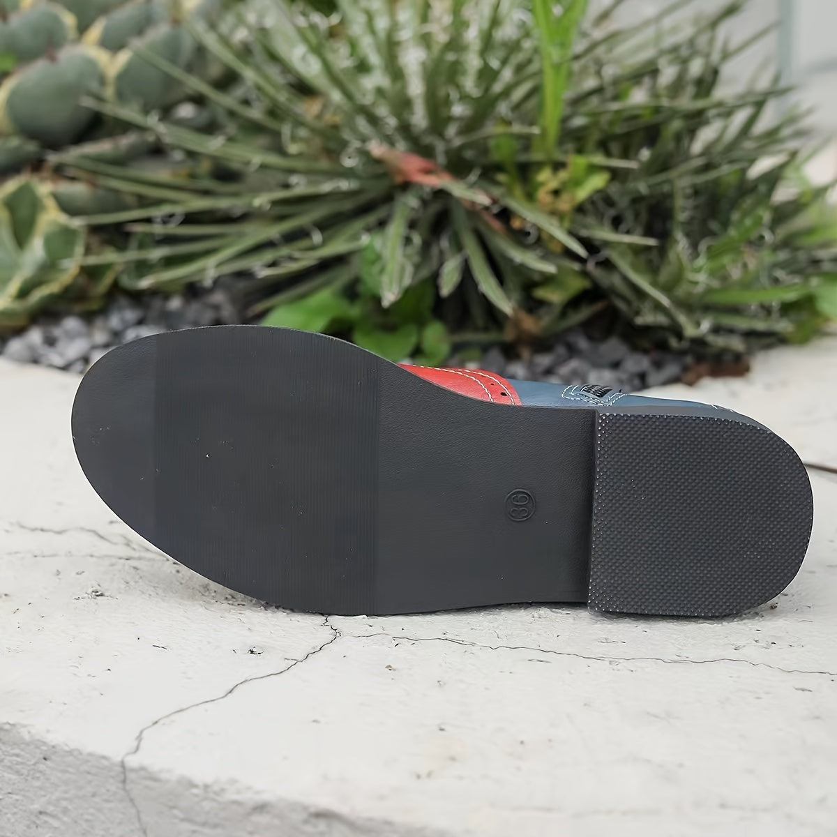 Women's Patchwork Leather Boots Side Zipper Platform Walking Comfortable Shoes