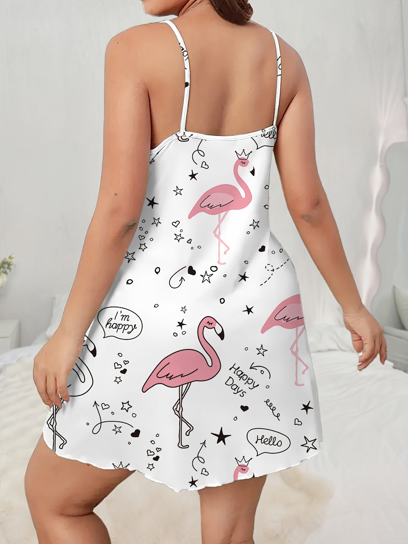 Women's Plus Size Flamingo Print Sleeveless Nightgown Ruffled Lightweight Sleepwear