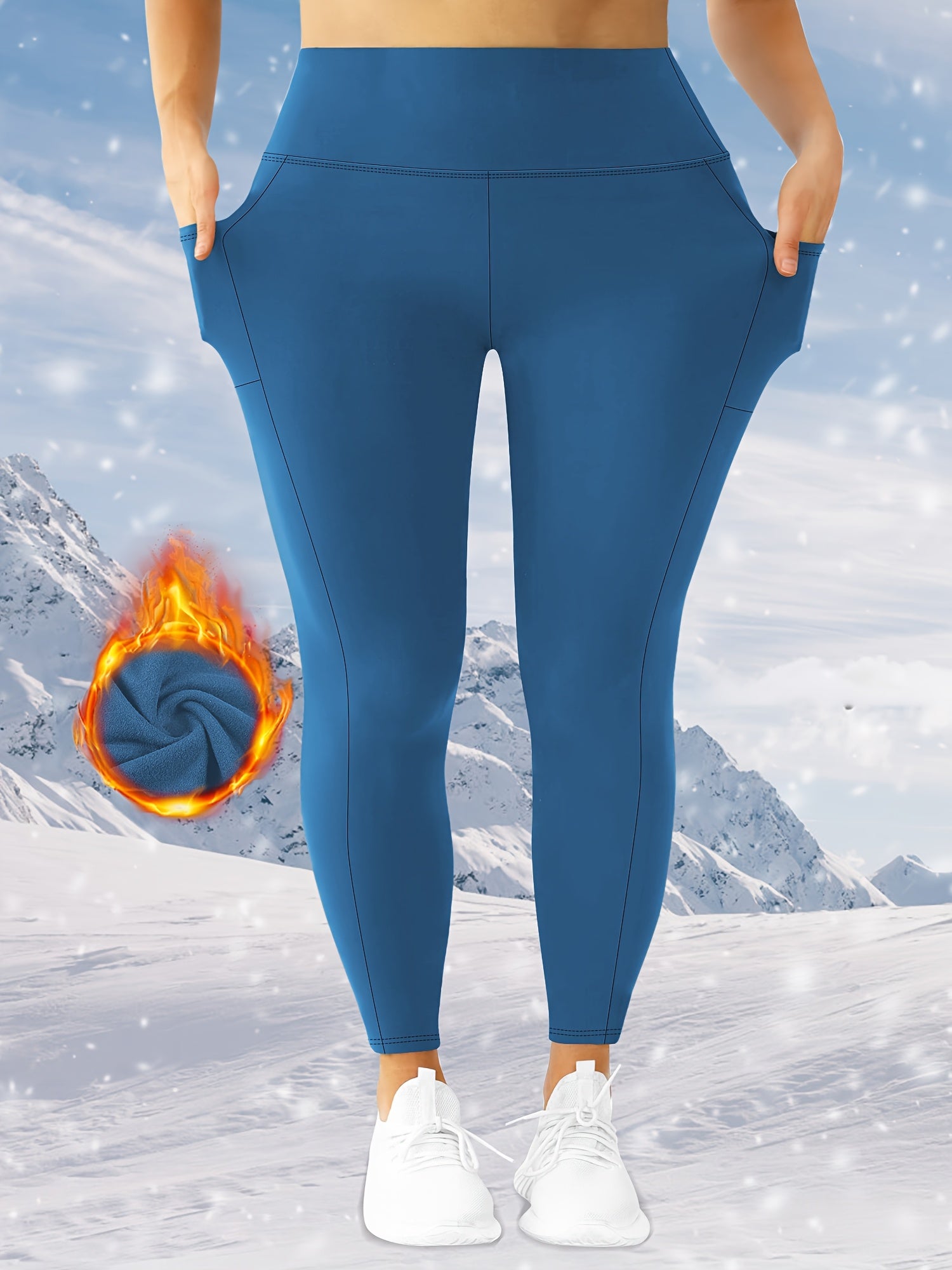 Women's Plus Size Fleece-Lined High-Waist Leggings with Pockets
