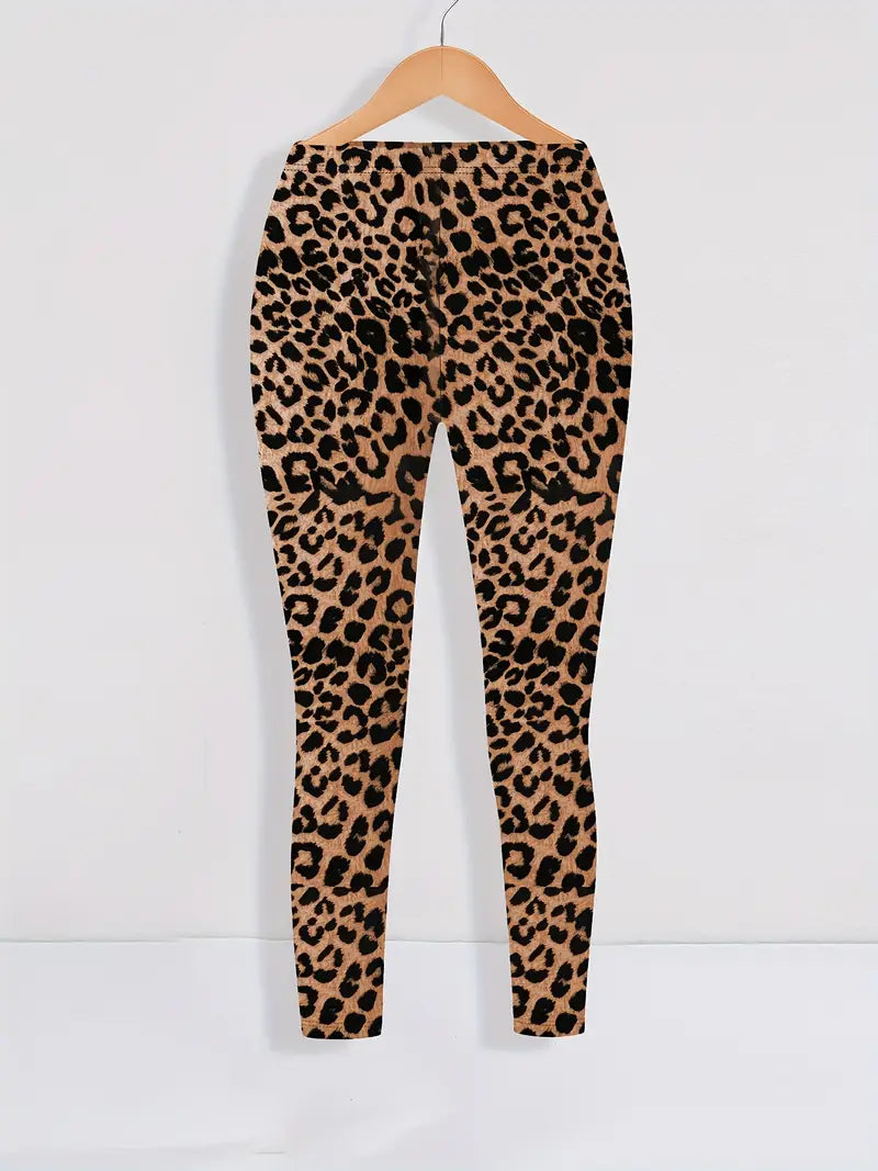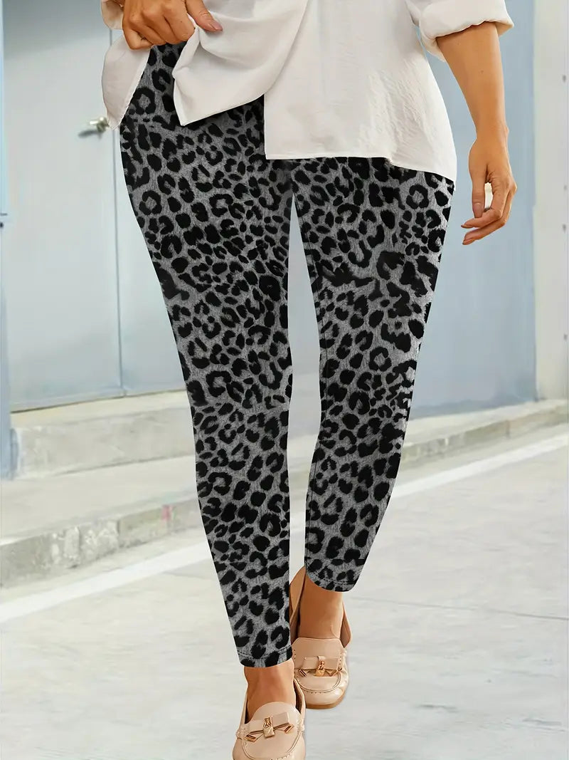 Women's Plus Size High-Waist Cropped Leggings Leopard Print Stretchy Polyester