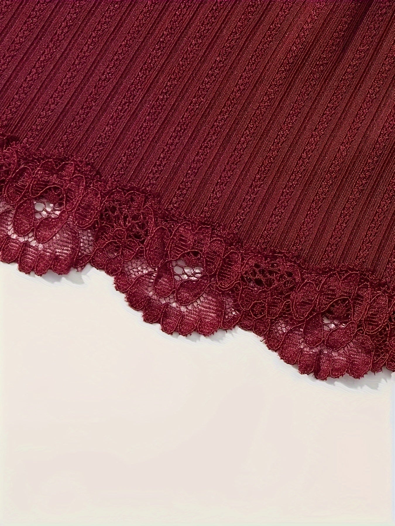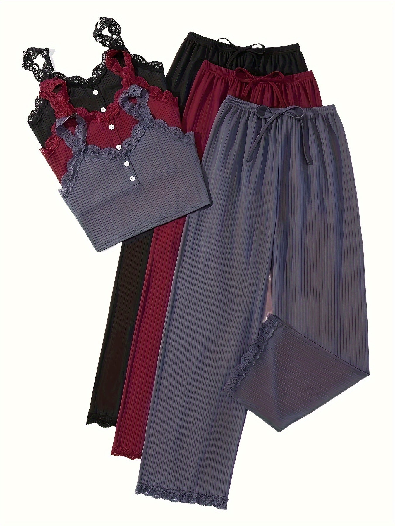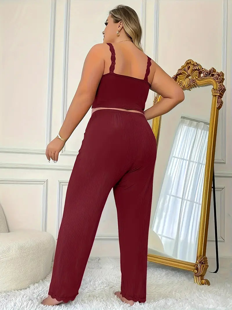 Women's Plus Size Lounge Set 3 Pieces Lace Ribbed Cami Top and Pants