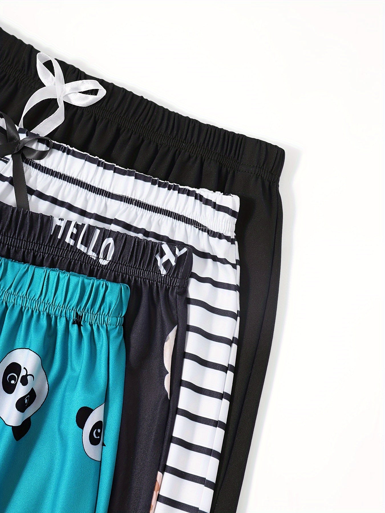 Women's Plus Size Lounge Shorts Cartoon Panda Bear Striped Elastic Waist Sleepwear