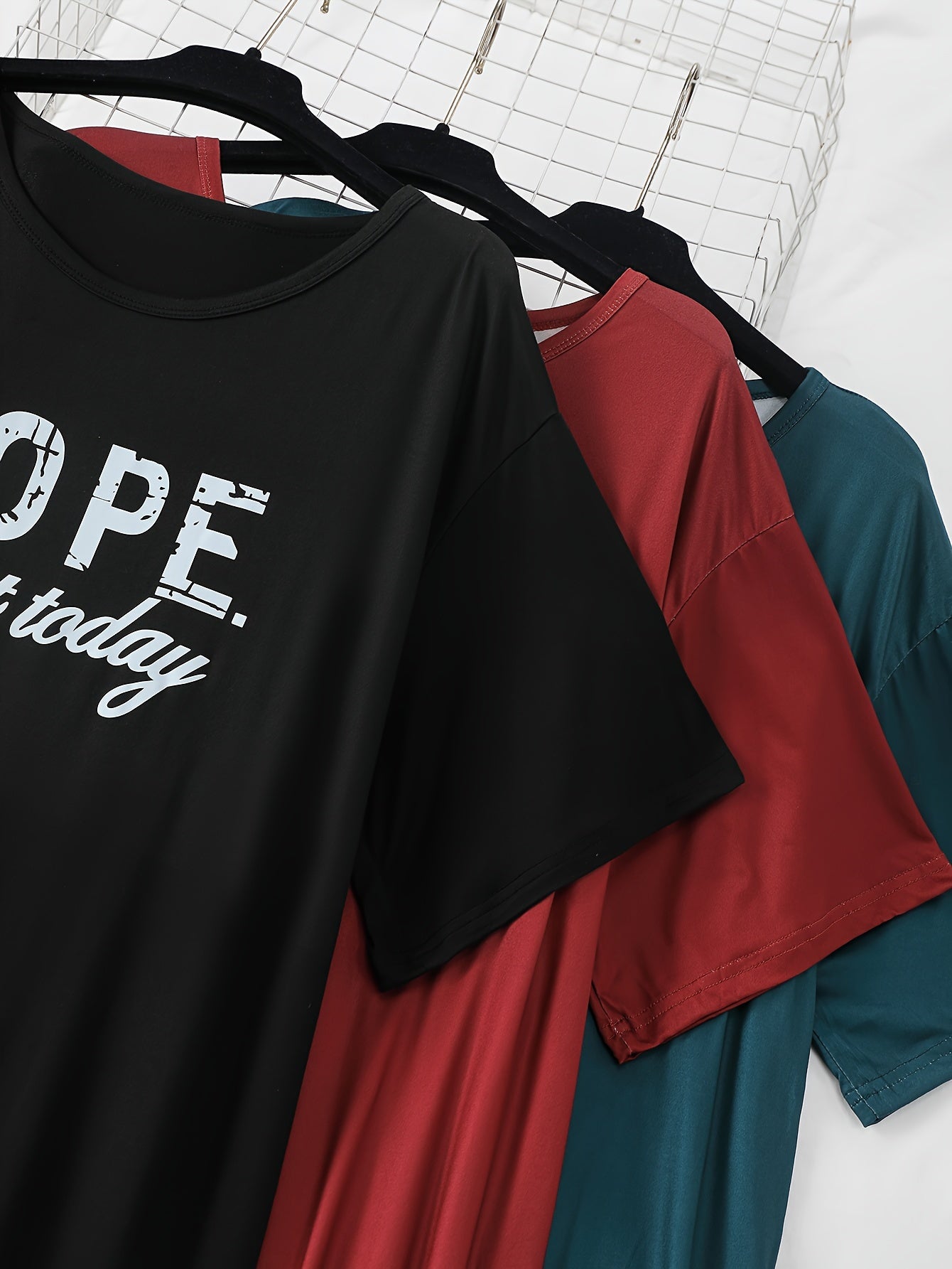 Women's Plus Size Polyester Casual T-Shirt Sleep Gown Set of 3