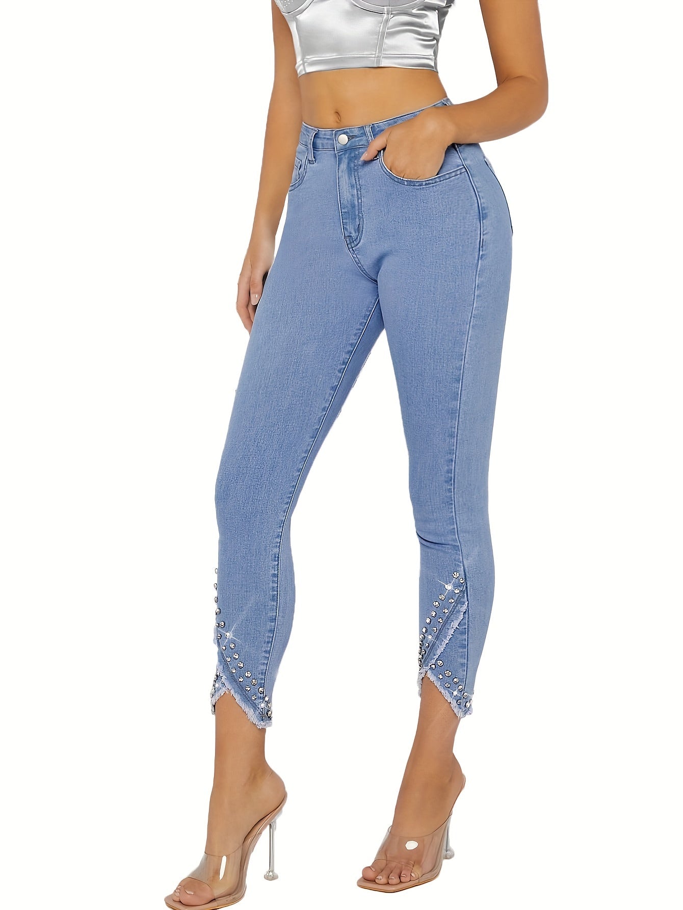 Women's Plus Size Slim Fit Elastic Diamond Hem Nine-Tenths Pants