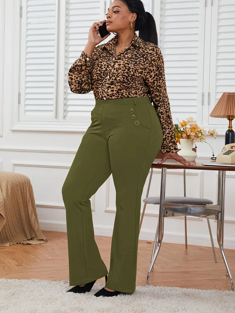 Women's Plus Size Stretch Wrinkle-Free Pull-On Dress Pants with Pockets
