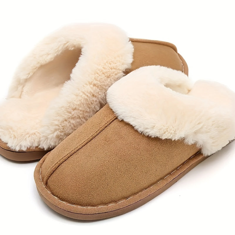 Women's Plush Indoor Outdoor Slippers Thick Sole Fuzzy Lining Gray