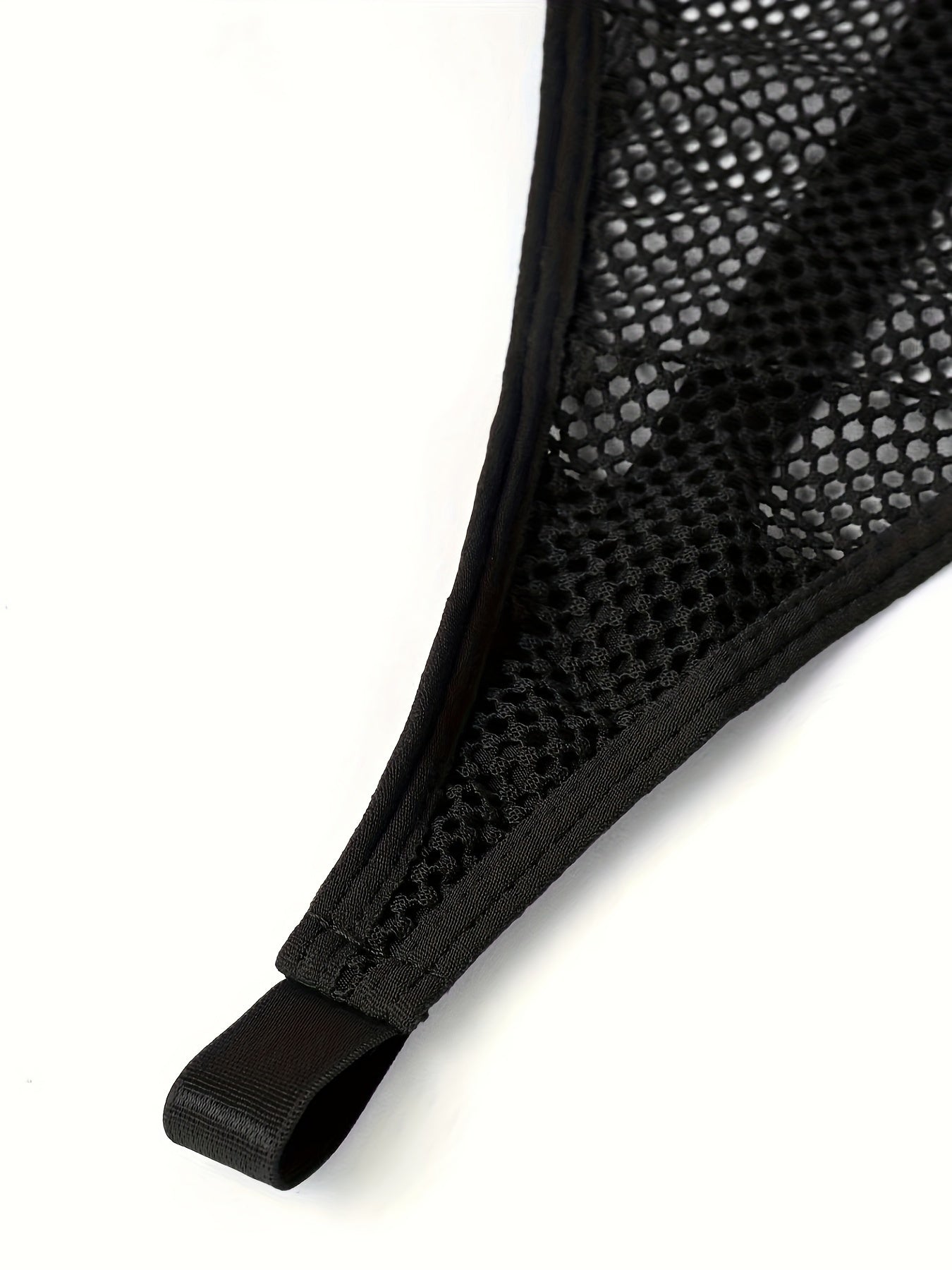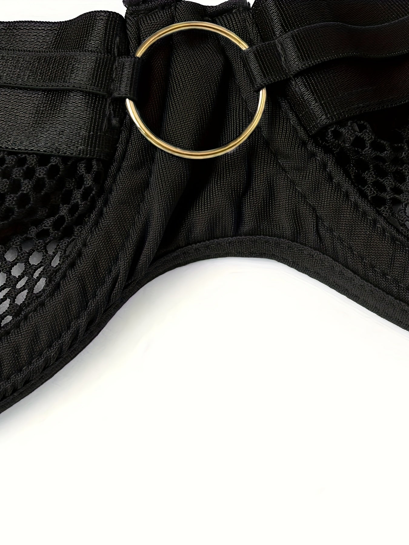 Women's Fishnet Lingerie Set with Ring Linked Bra Cut Out Thong and Girdle