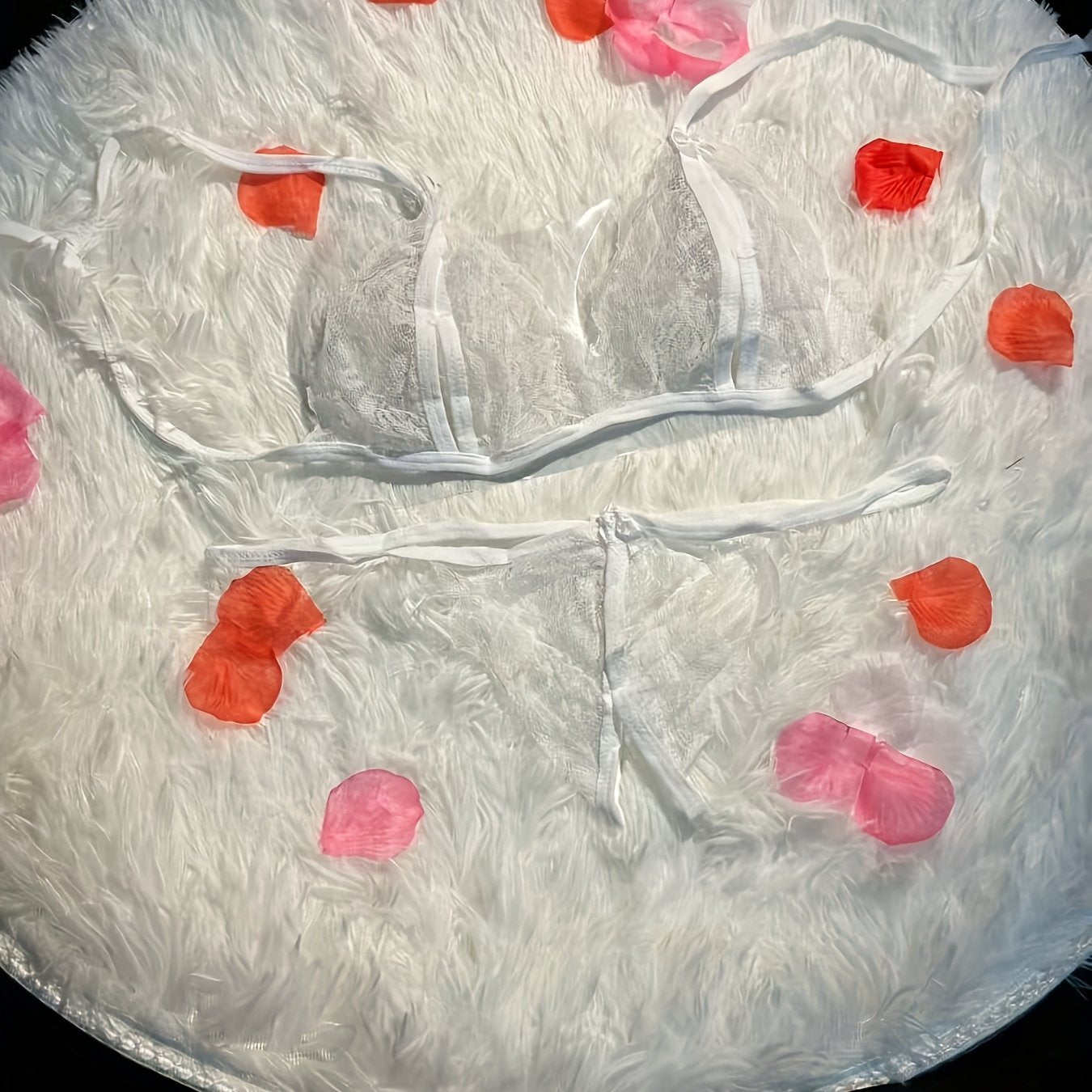 Women's Floral Lace Lingerie Set Triangle Bra and Open Crotch Thong