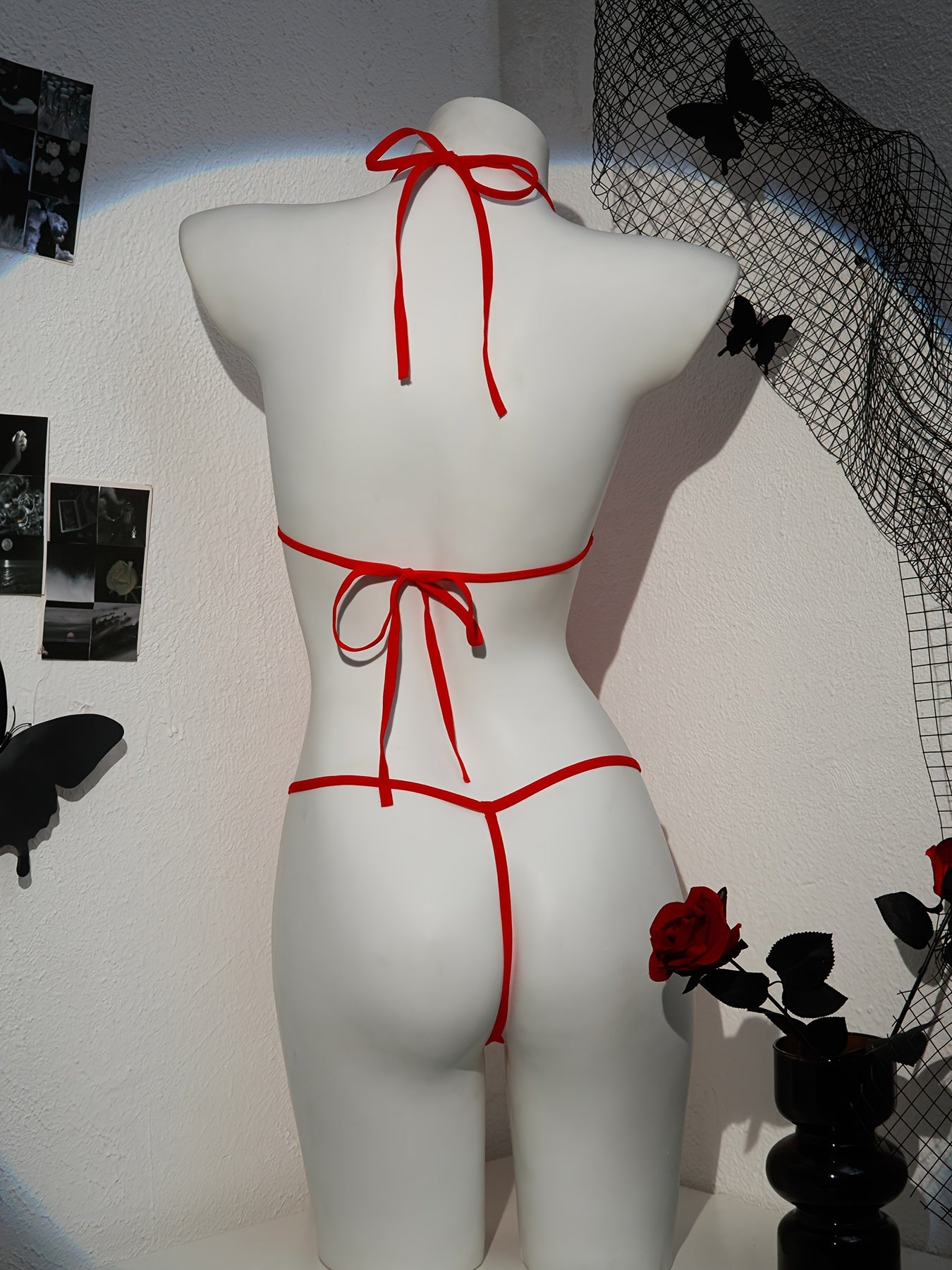 Women's Lace-Up Bodysuit with Halter Neck Semi-Sheer Lingerie