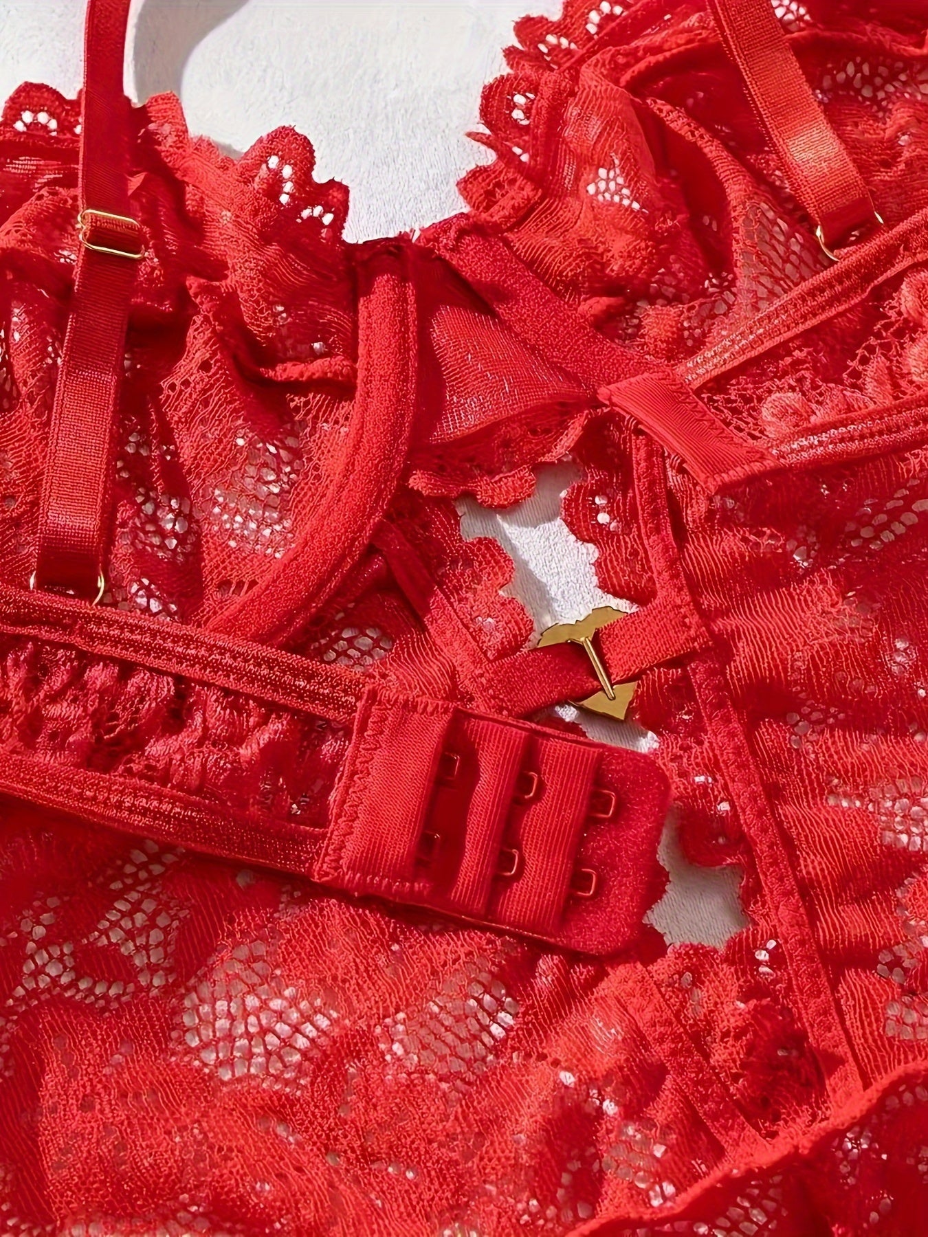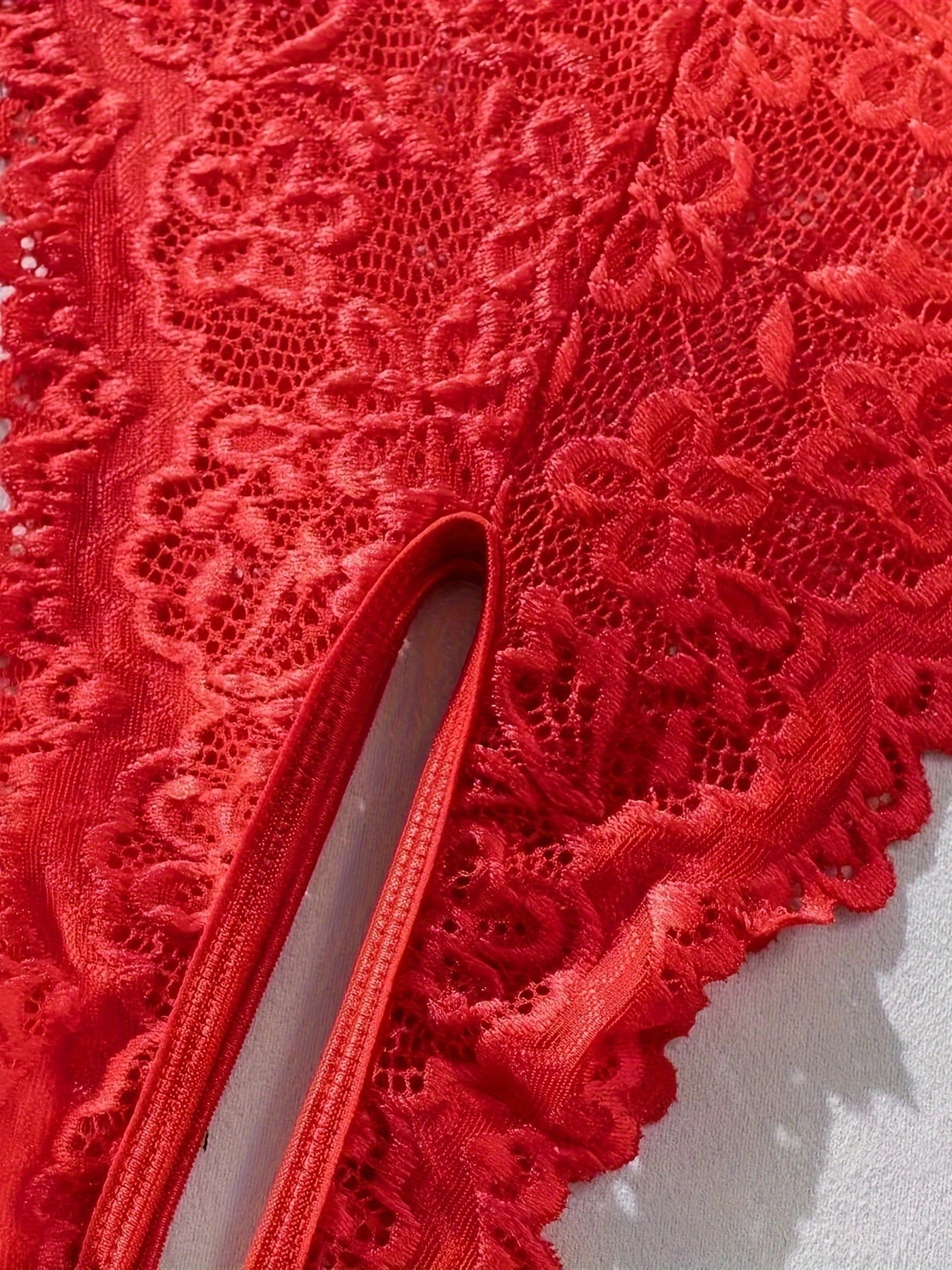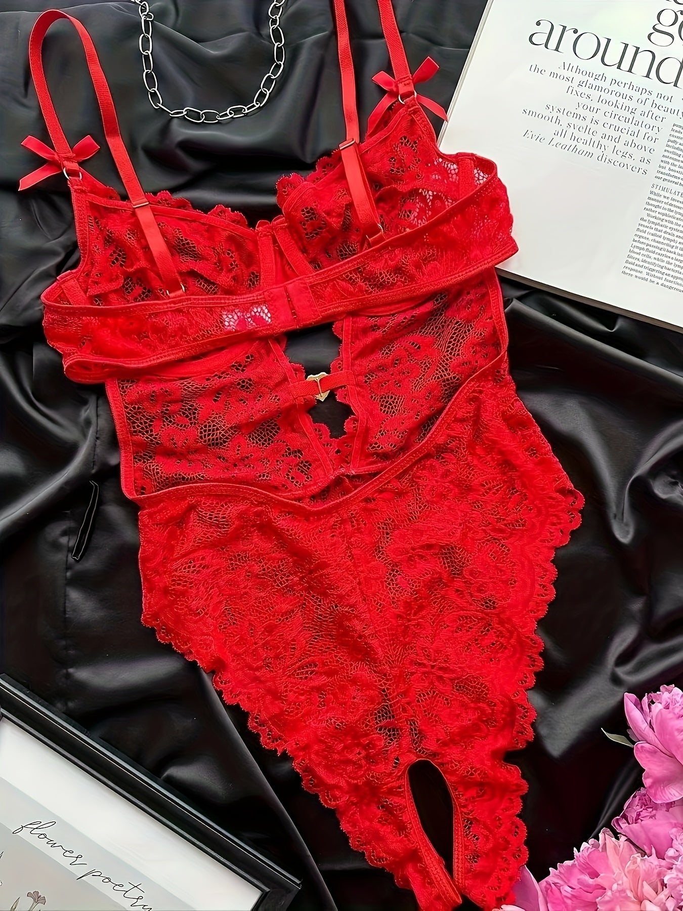 Women's Floral Print Lingerie Bodysuit with Bowknot and Mesh Hollow Design