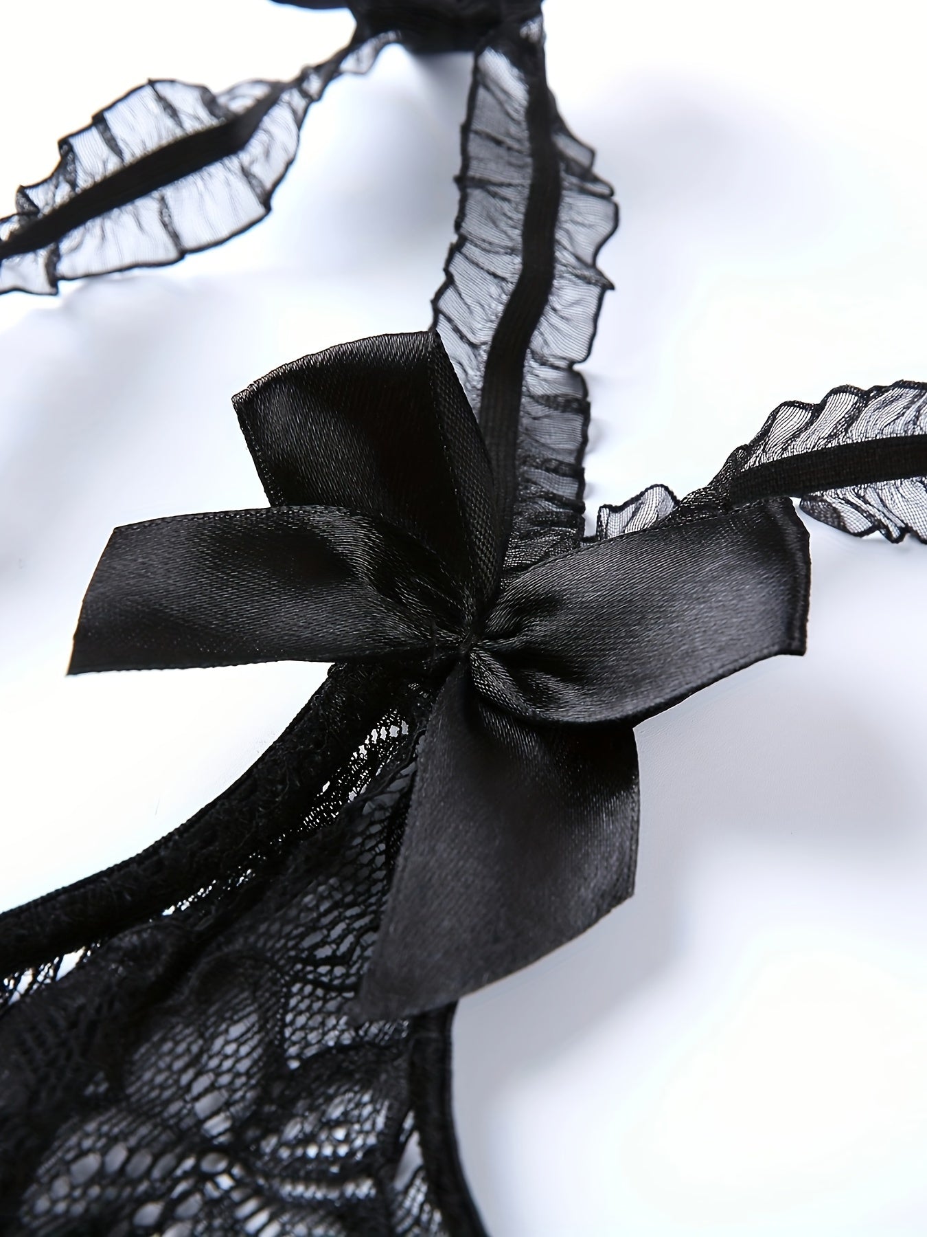 Women's Floral Lace Ruffle Trim Teddy Crotchless Bodysuit Lingerie