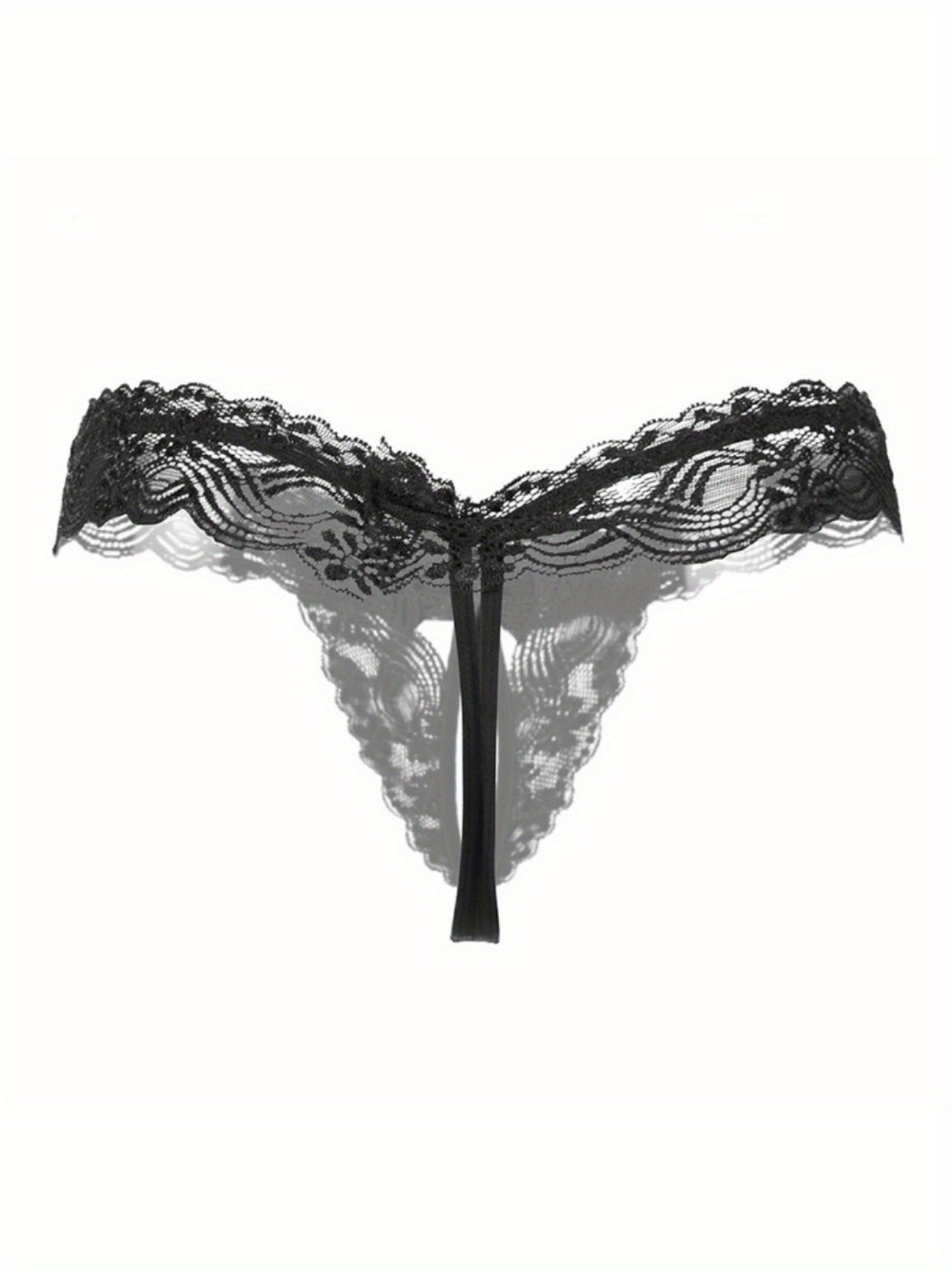 Women's Floral Lace Thong Lingerie with Open Crotch Faux Pearl Panties