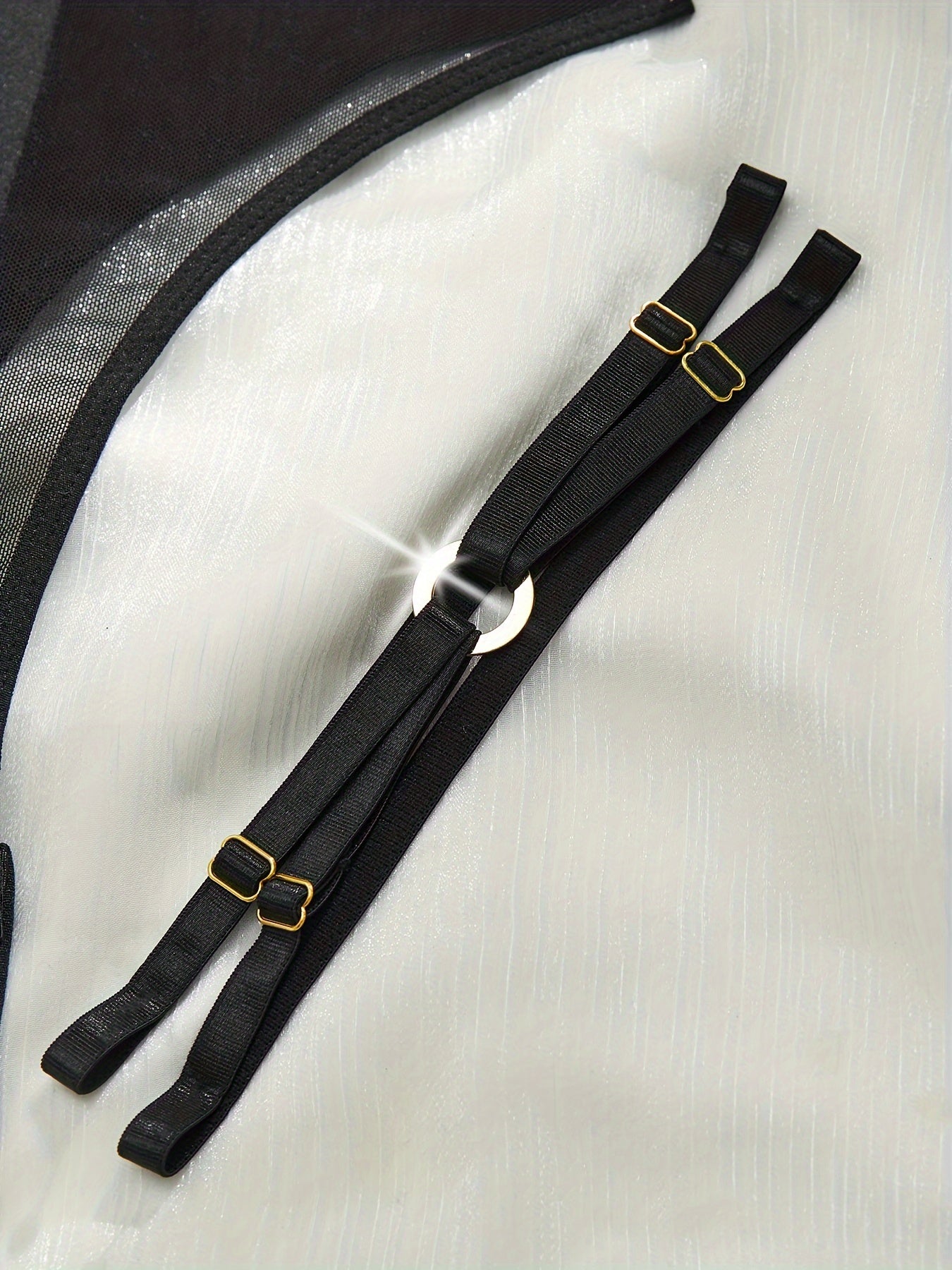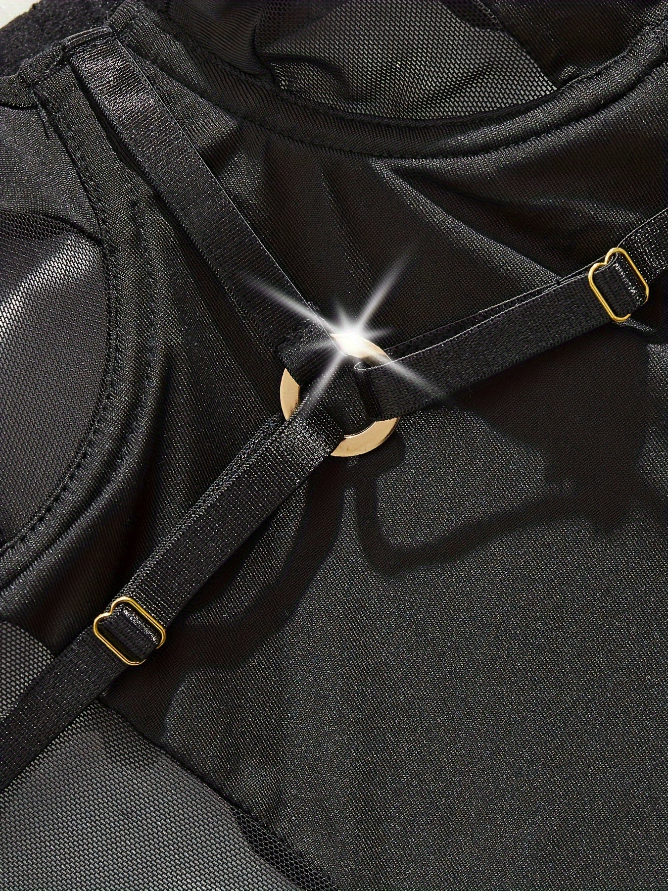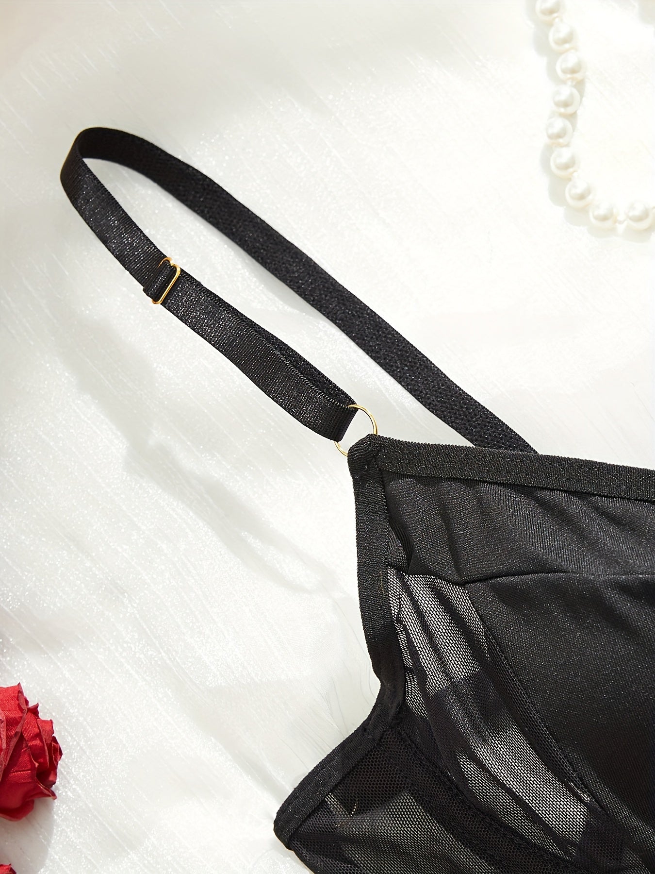 Women's Mesh Teddy Bodysuit with Leg Rings V Neck Backless Lingerie