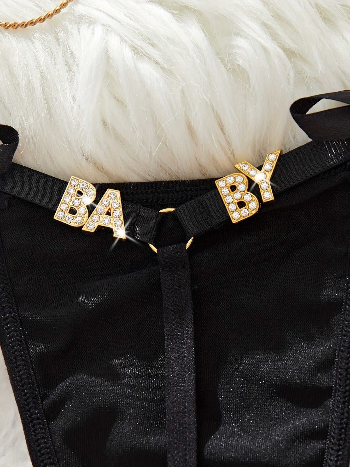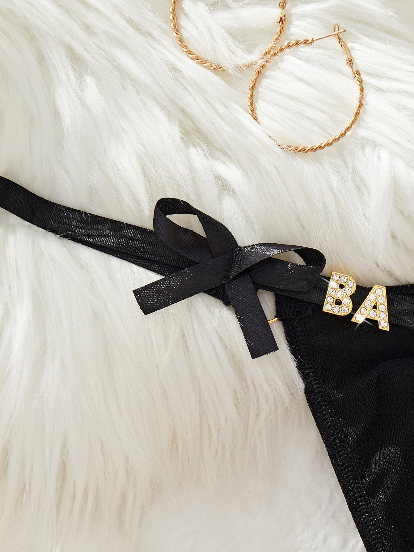 Women's Rhinestone Bow Thong Panties Low Rise Solid Color Stretch Polyester Lingerie