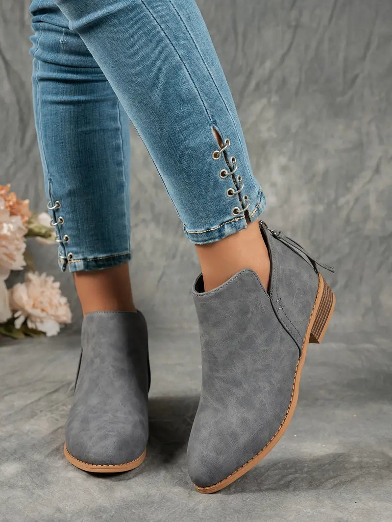 Women's Solid Color Ankle Boots Chelsea Short Boots with Thick Heel