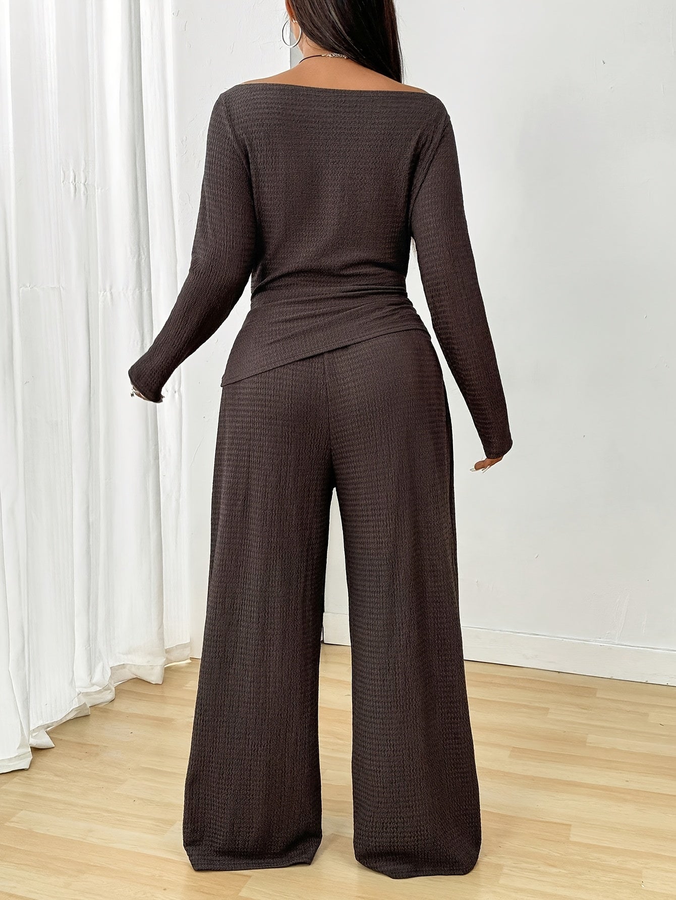 Women's Plus Size Spring Autumn Loungewear Set Long Sleeve Top Elastic Waist Pants
