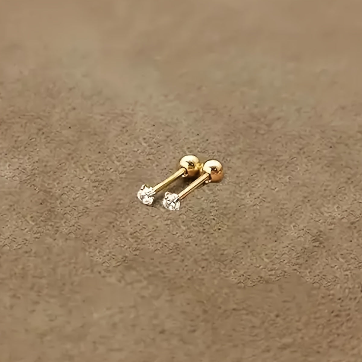 Women's Stainless Steel Golden Four-Prong Twisted Ball Cubic Zirconia Earrings