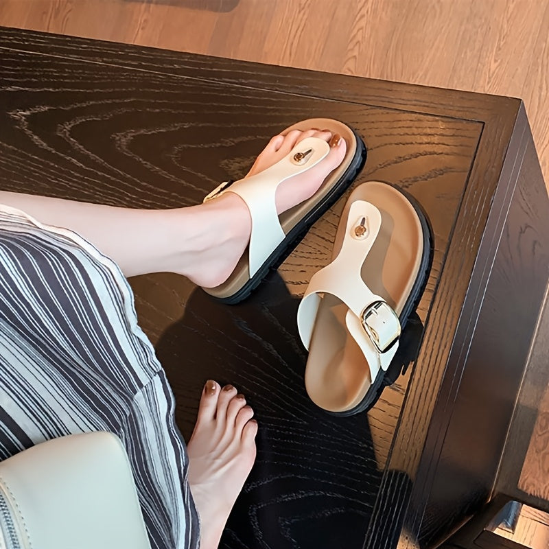 Women's Summer Slip-On Thong Sandals EVA Beach Casual Shoes Black Beige