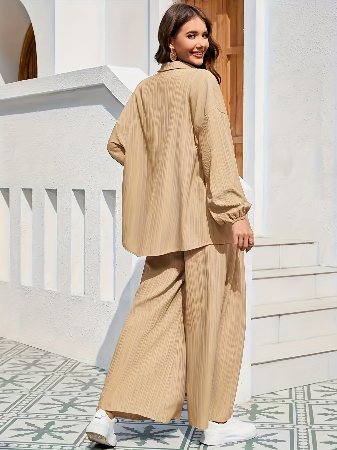 Women's Polyester Suit Set with Reversible Collar for Vacation Style