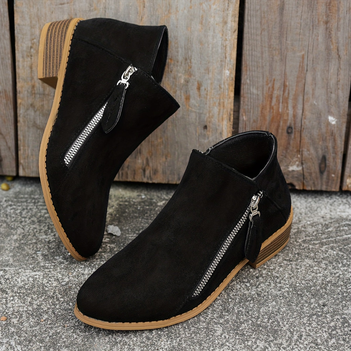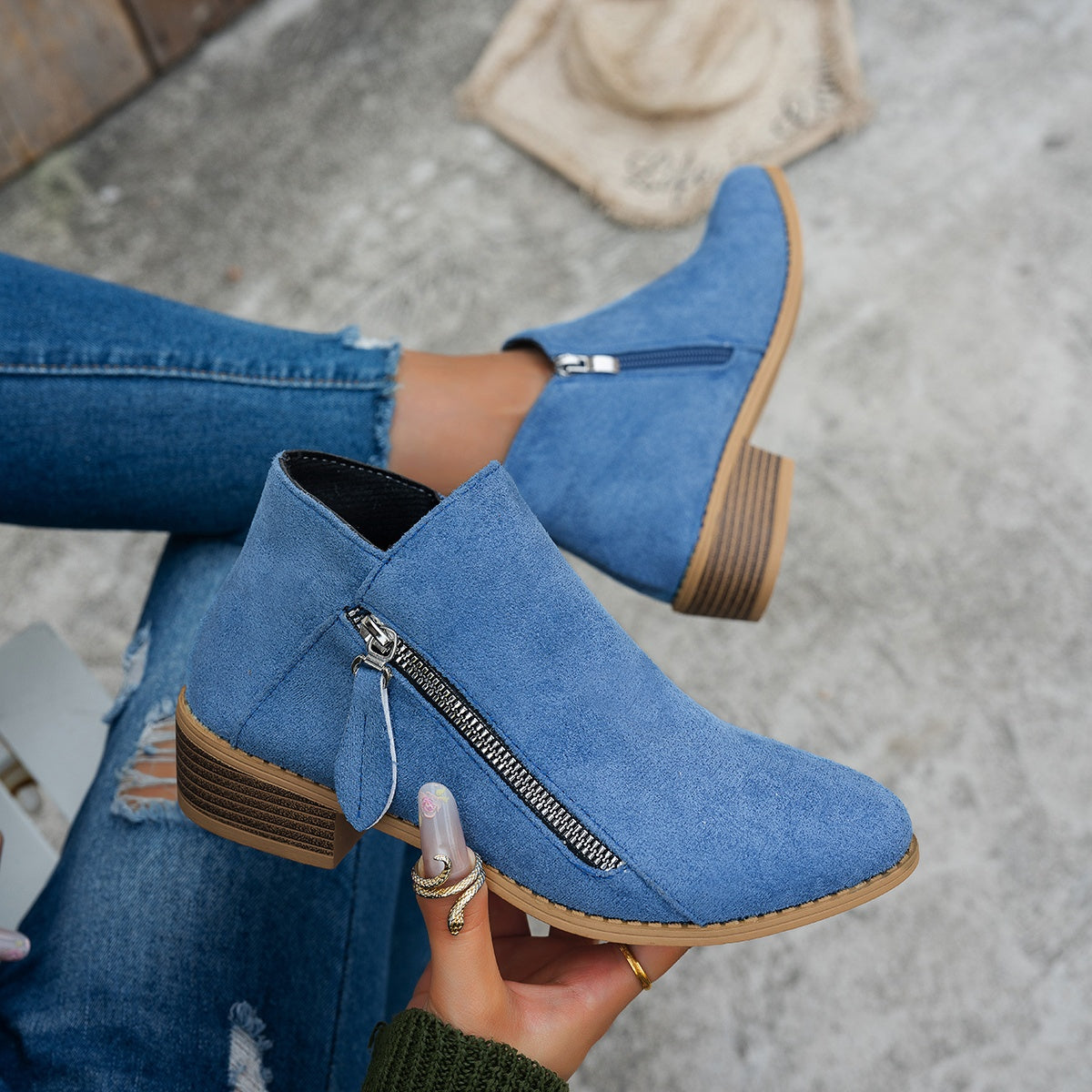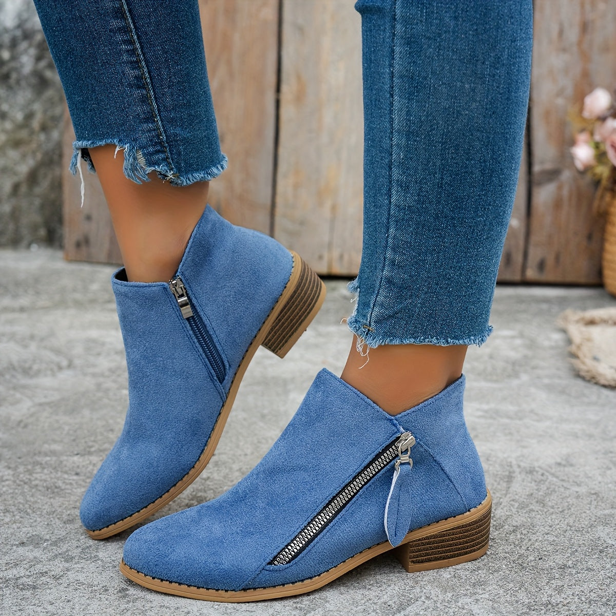 Women's Velvet Ankle Boots, Chunky Heel, Pointed Toe, Side Zipper