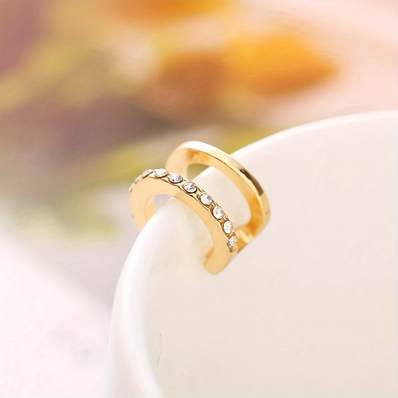 Women's Vintage Double Layer C-Shaped Rhinestone Clip On Earring
