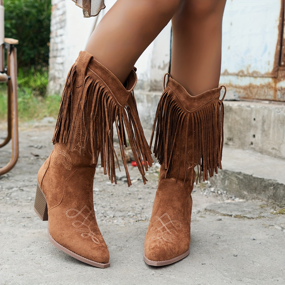 Women's Western Cowboy Boots with Fringe Butterfly Embroidery Pointed Toe