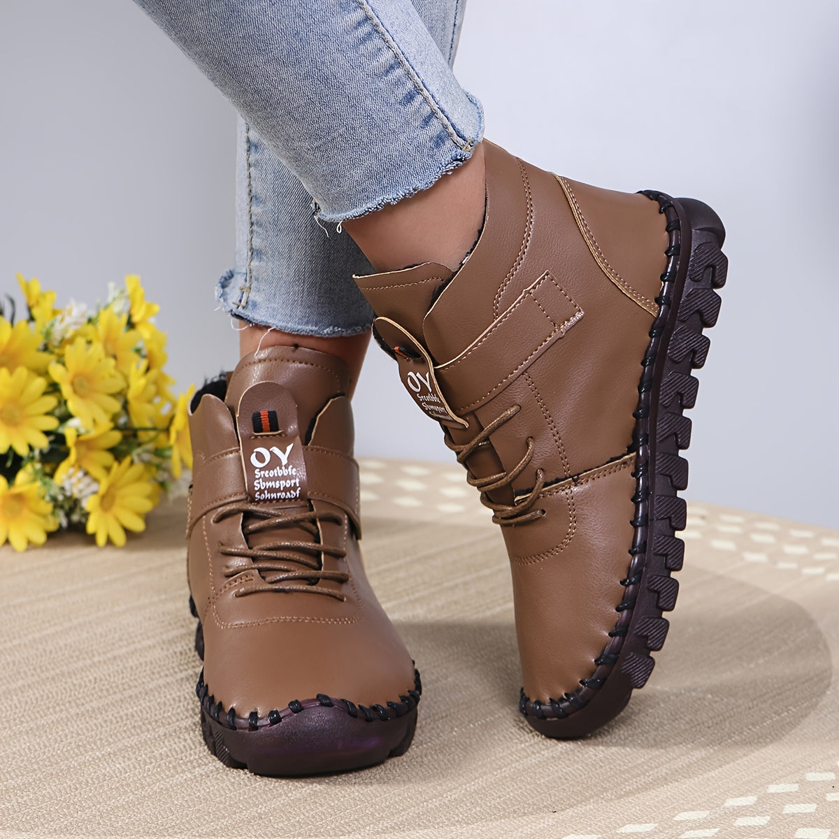 Women's Winter Faux Leather Ankle Boots with Plush Lining and Rubber Sole