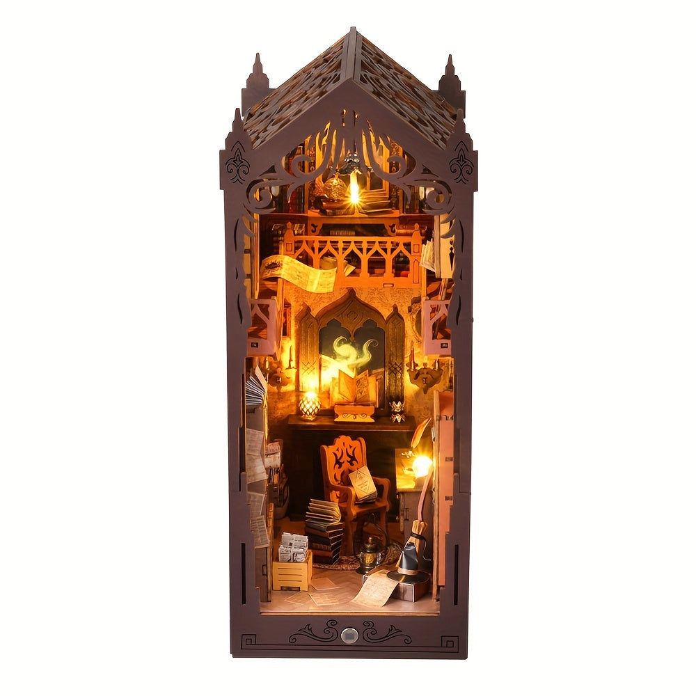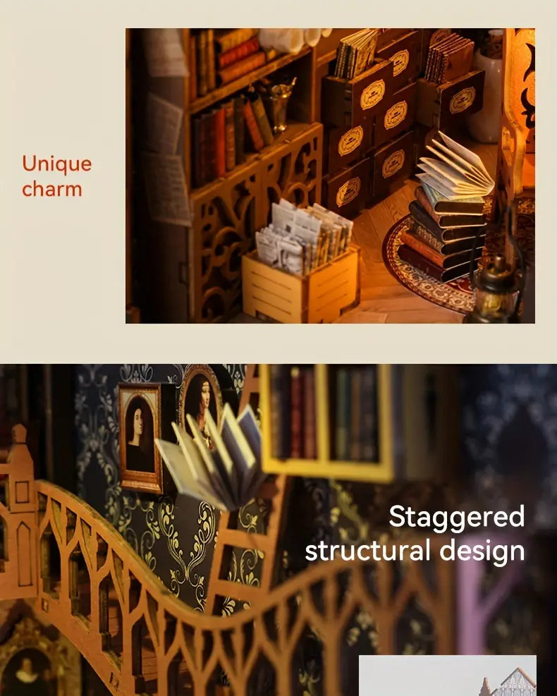 Wooden Puzzle Miniature Book Stand Handcrafted 3D Model for Creative Gift Peach Brown