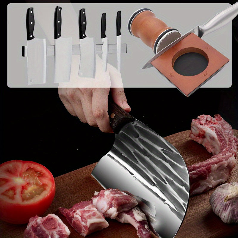 Wooden Knife Sharpener with Angle Guide Stainless Steel Honing Tool Non-Slip Base
