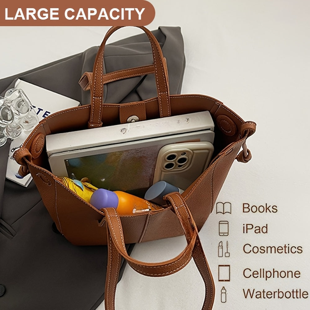 Women's Autumn PU Tote Bag with Magnetic Closure Black