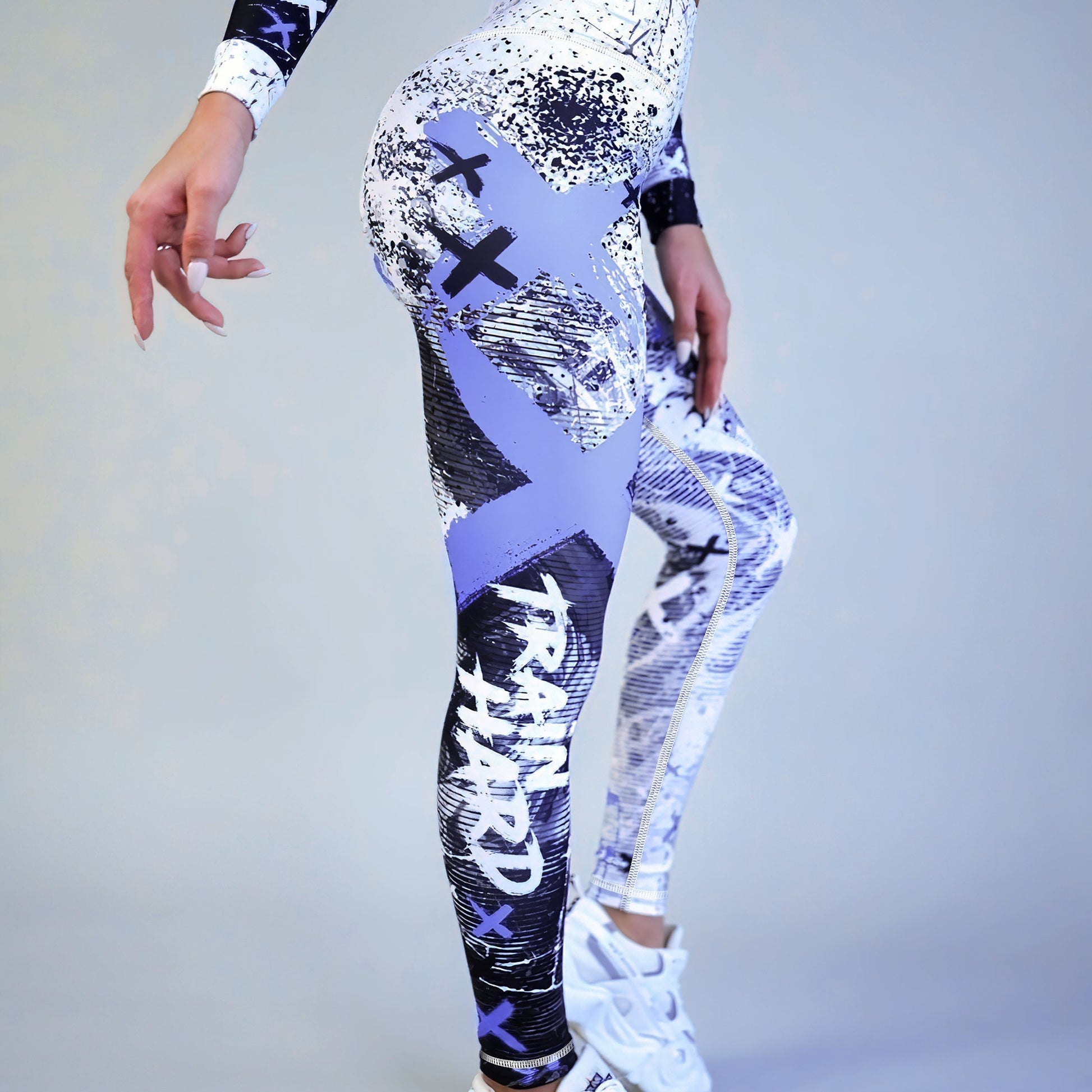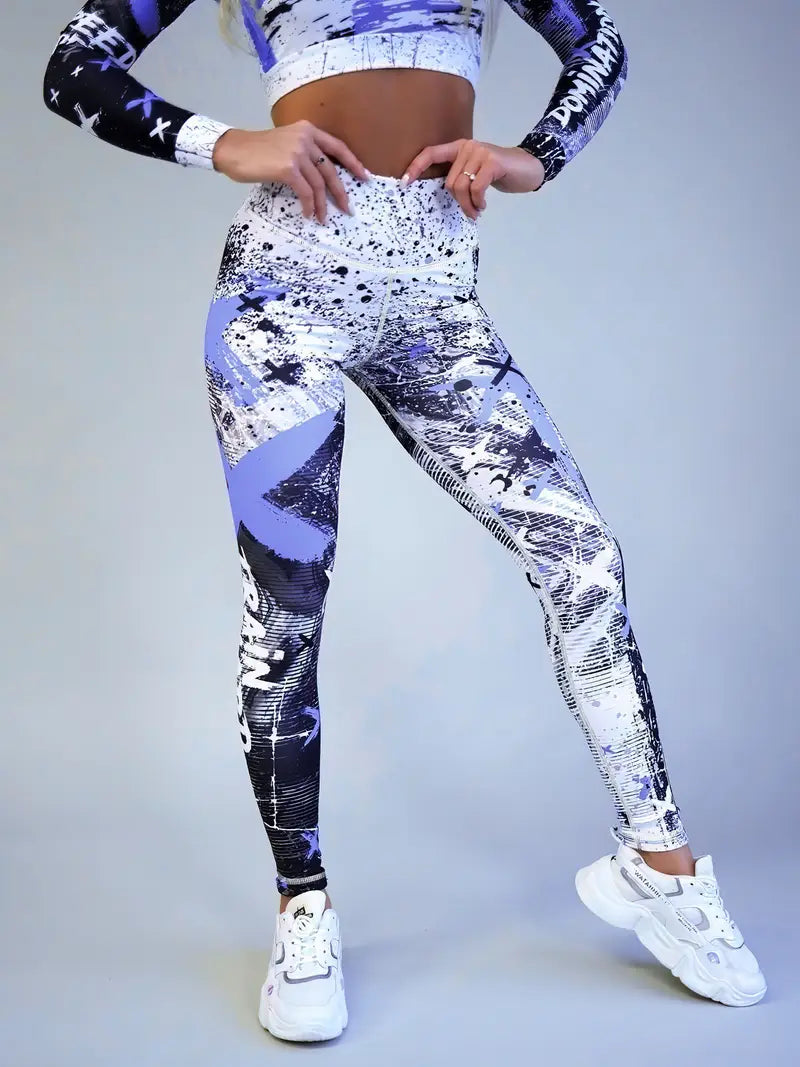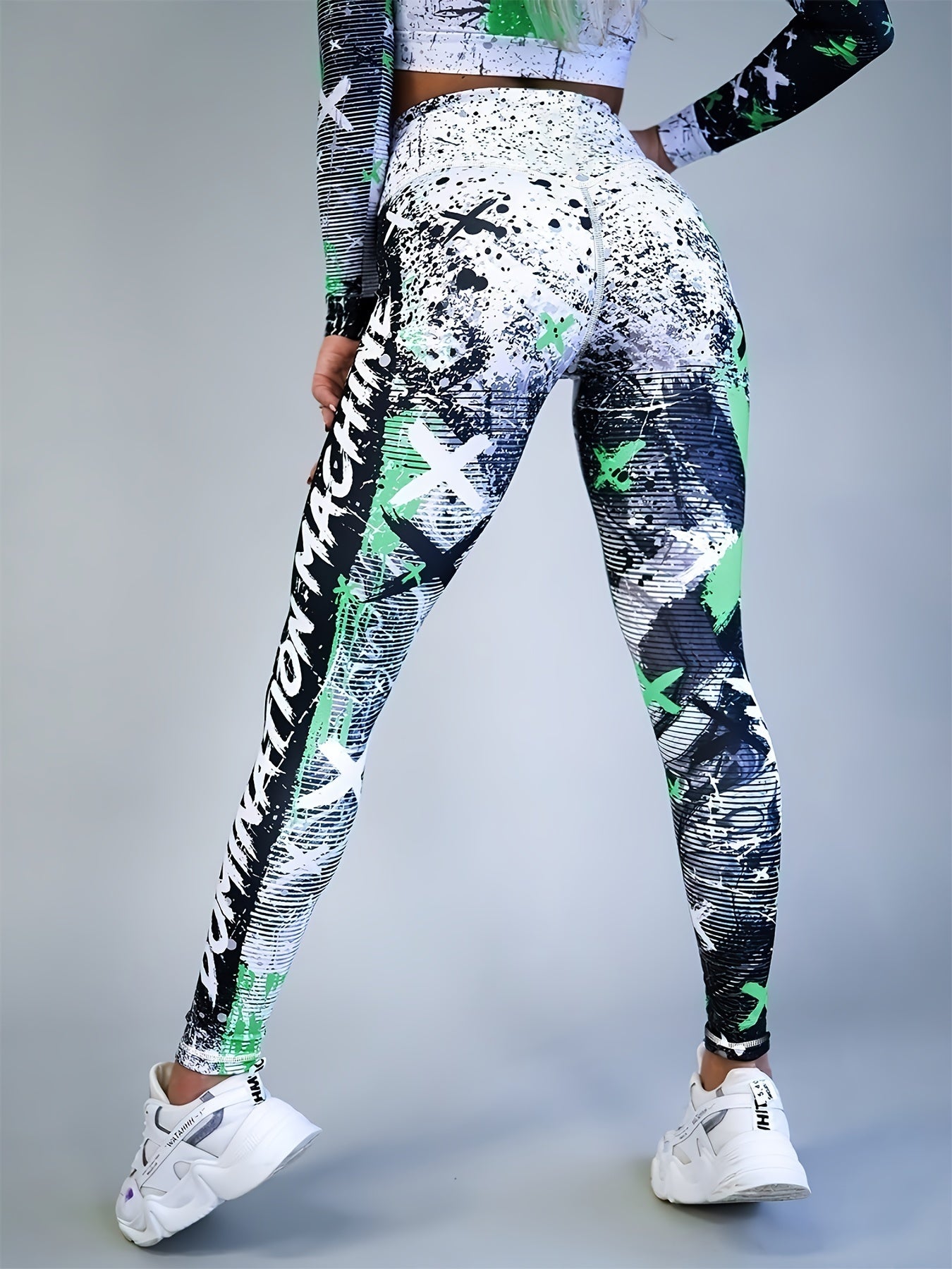 Women's High Waist Leggings with Color Block Graffiti Print Tummy Control Butt Lift for Running and Activewear
