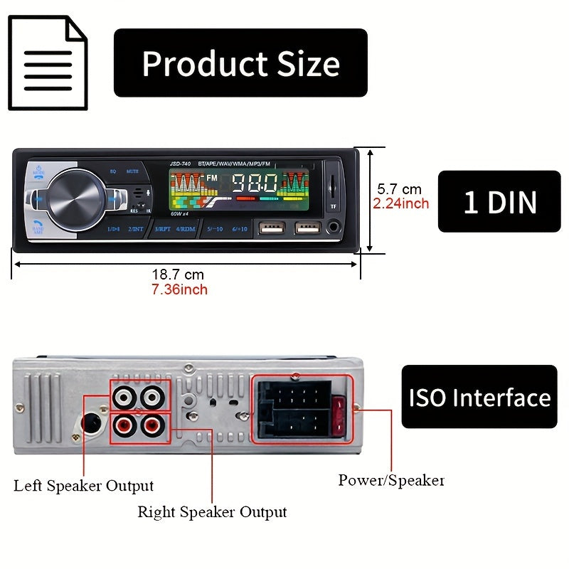 1 DIN Car Stereo with Wireless Remote 60W x 4 FM AUX USB TF Support